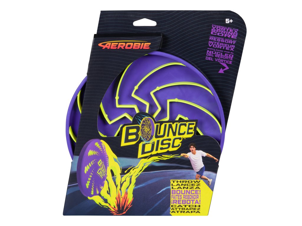 S diskom Aerobie PRO Bounce s O 20 cm môžete hádzať, odrážať a chytať naraz. Tento hádzací disk je dokonalou vonkajšou hrou pre deti, ktorú môžu hrať samy alebo s priateľmi a rodinou. Hoďte Bounce Disc o stenu, zem alebo akúkoľvek prekážku a sledujte, ako sa disk odráža, vracia sa k vám alebo sa rozlieta všetkými smermi. Alebo vyzvite svojich priateľov, aby zistili, kto má najkreatívnejší odraz. Vďaka ultra ľahkému držaniu sa tento lietajúci disk ľahko hádže, a navyše má odolné pružinové jadro, takže sa s ním môžete hrať znova a znova. Jasný neónový dizajn uľahčuje spozorovanie, pokiaľ sa váš Bounce Disc stratí medzi stromami alebo krovím. Aerobie PRO Bounce meria 20 cm v priemere, takže si zábavu môžete vziať kamkoľvek. Lietajúce disky Aerobie, bumerangy, superdisky a Sonic Fin sú skonštruované pre maximálnu zábavu a sú skvelými vonkajšími hračkami pre deti a dospelých, ideálnymi pre všetky úrovne zručností. Aerobie PRO Bounce je vhodný pre deti od 5 rokov. Jazykové mutácie: CZ, SK, EN, ESP, DE, PL, IT. Rozmery disku: 1,8 x 23,5 x 23,5 cm. Rozmery balenia 30,48 x 25,08 x 2,54 cm.