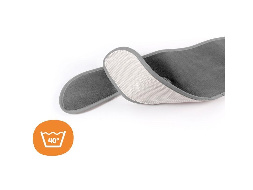 - vytvarovaná tak, aby vám pri používaní nebránili bezpečnostné pásy (otvor na strednú pracku, bočné tvarovanie pre ramenné časti pásov), vďaka otvoru pre pracku nedochádza k posúvaniu vložky