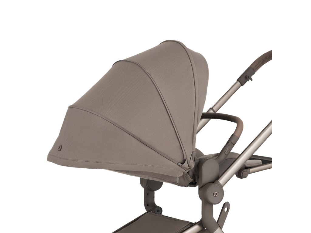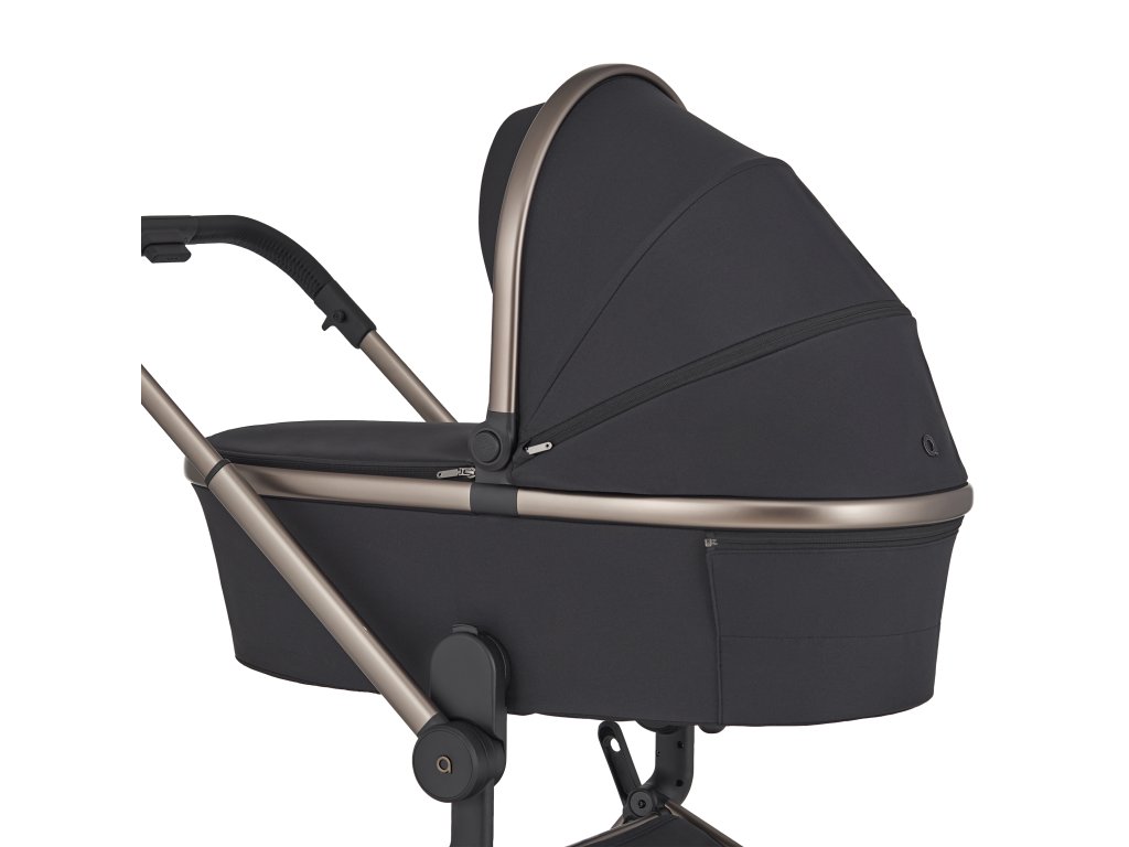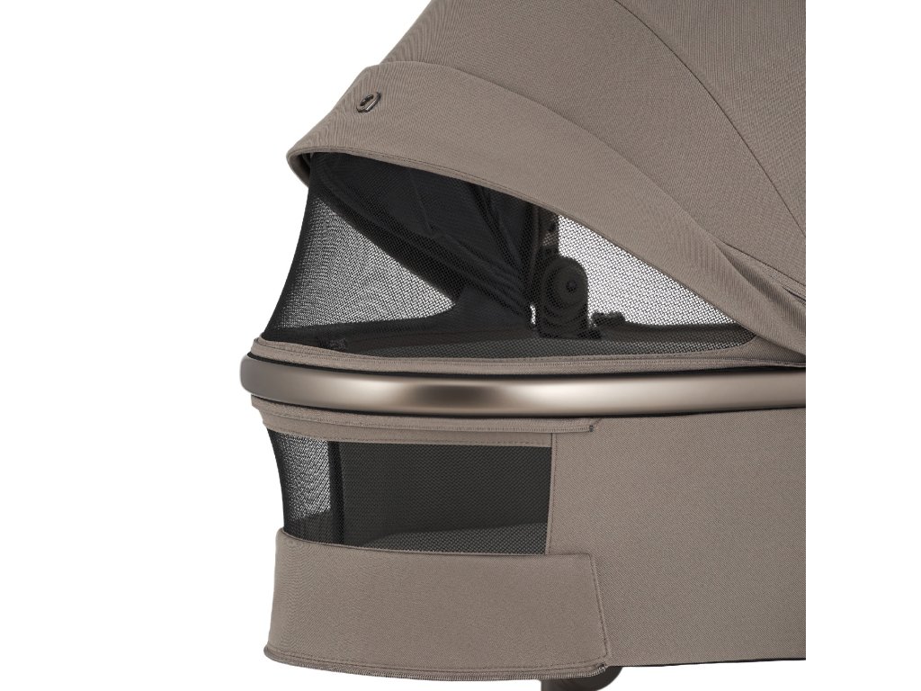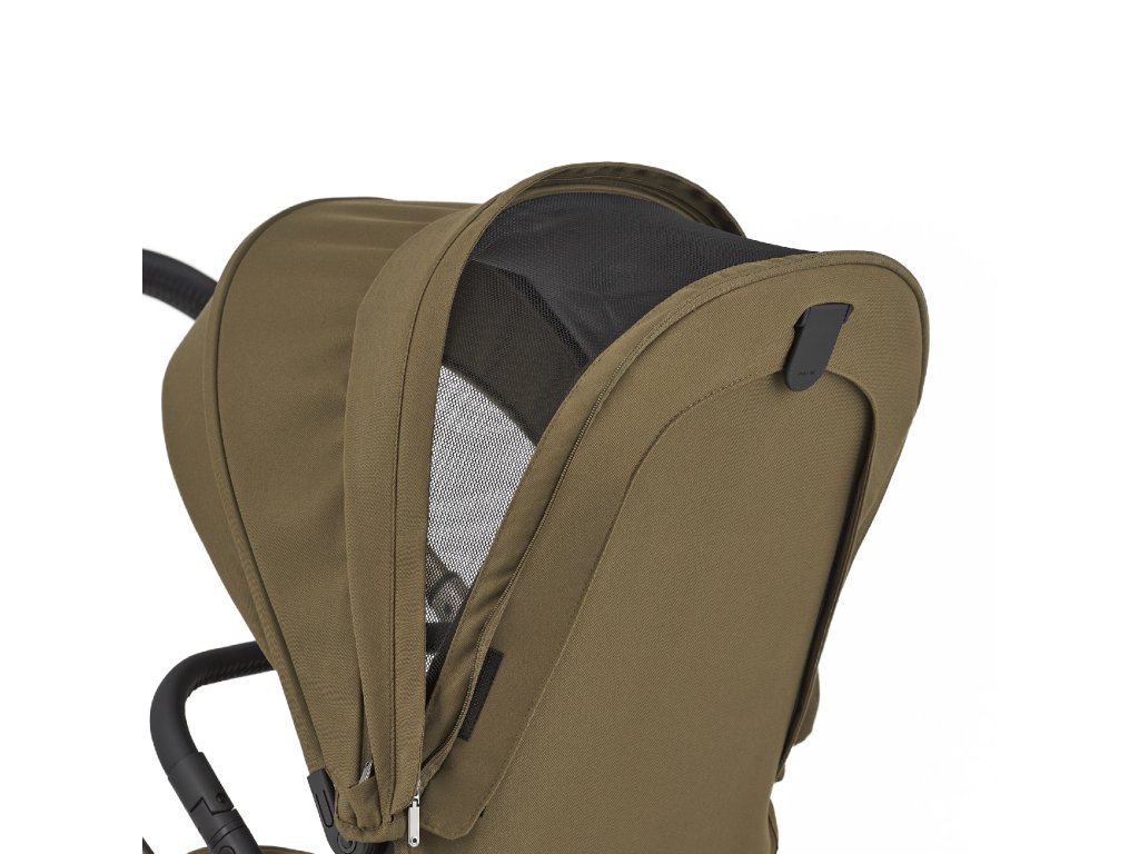- Ventilačný systém - kočík má prepracovaný ventilačný systém, ktorý zaisťuje ventiláciu na všetkých potrebných miestach — od striešky a prednej časti vaničky až po opierku nôh a striešku športovej časti.