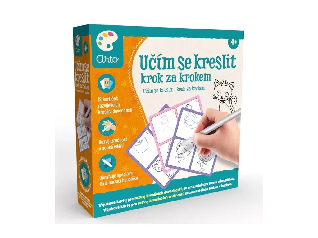 Predstavujeme edukatívnu sadu Učím sa kresliť Krok za krokom ARTO – ideálny nástroj pre malých umelcov, ktorí sa chcú naučiť kresliť! Táto sada hravo rozvíja detskú šikovnosť, sústredenosť a trpezlivosť.