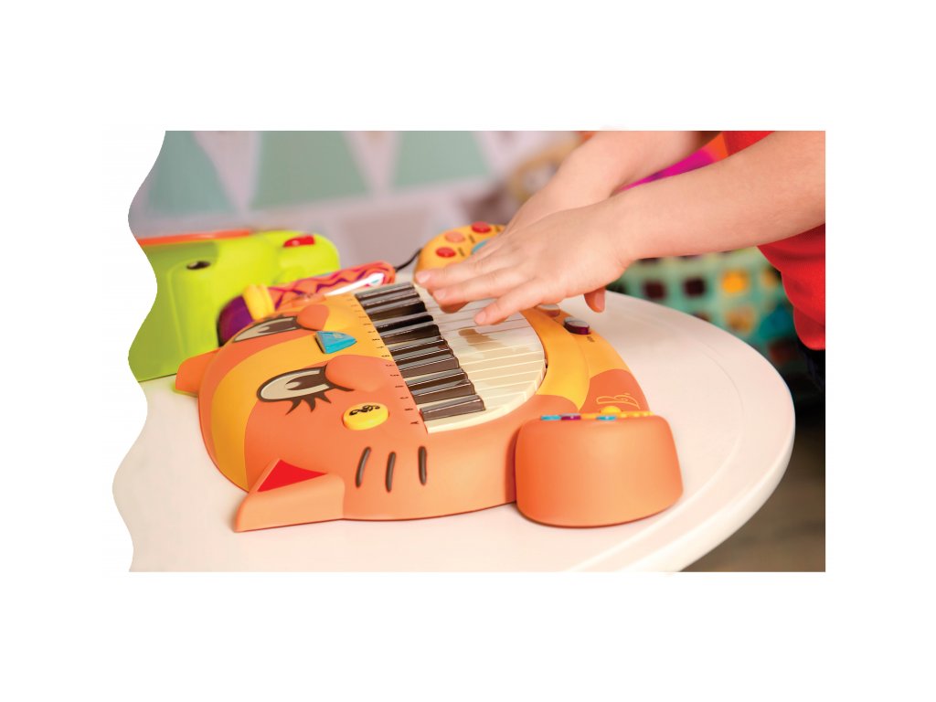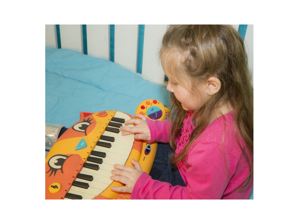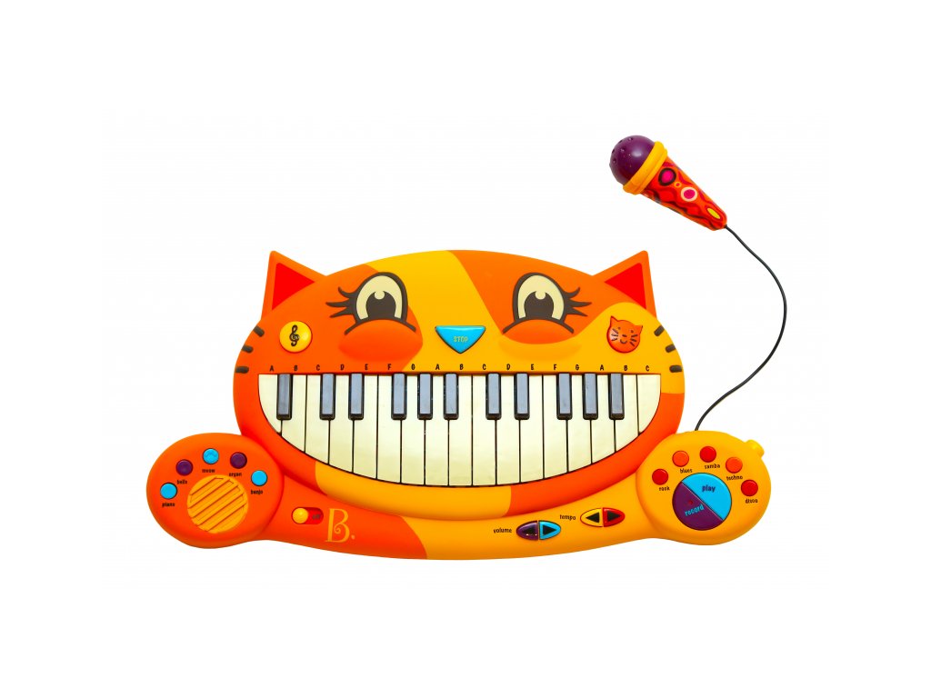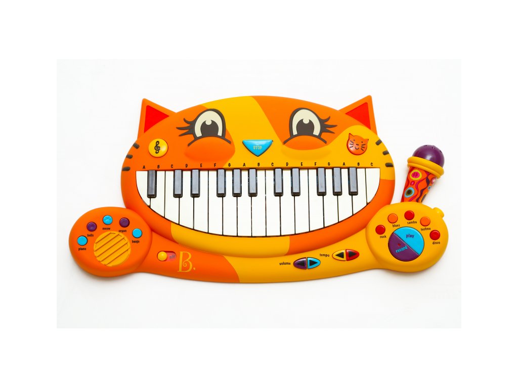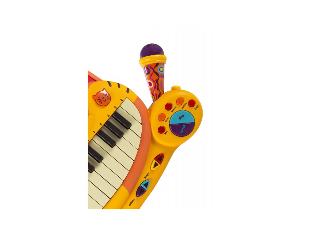 Elektronické piáno Btoys s funkčným mikrofónom pre malých hudobníkov. Možnosť voľby z 5 inštrumentov, 5 rytmov, 20 známych melódií a 7 mačacích pesničiek. Nastavenie hlasitosti a tempa. Funkcia nahrania vlastnej melódie umožňuje zaznamenať prvé skladateľské pokusy. Mikrofón je možné odpojiť. Vhodné pre deti od 2 do 6 rokov.