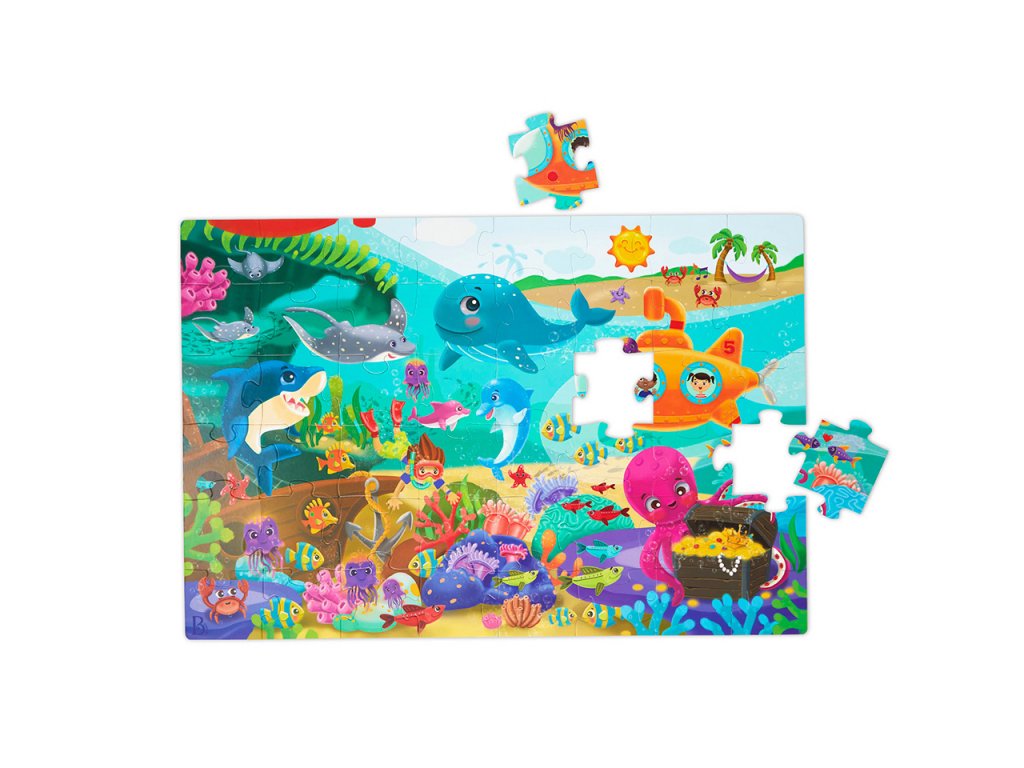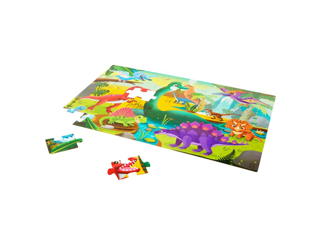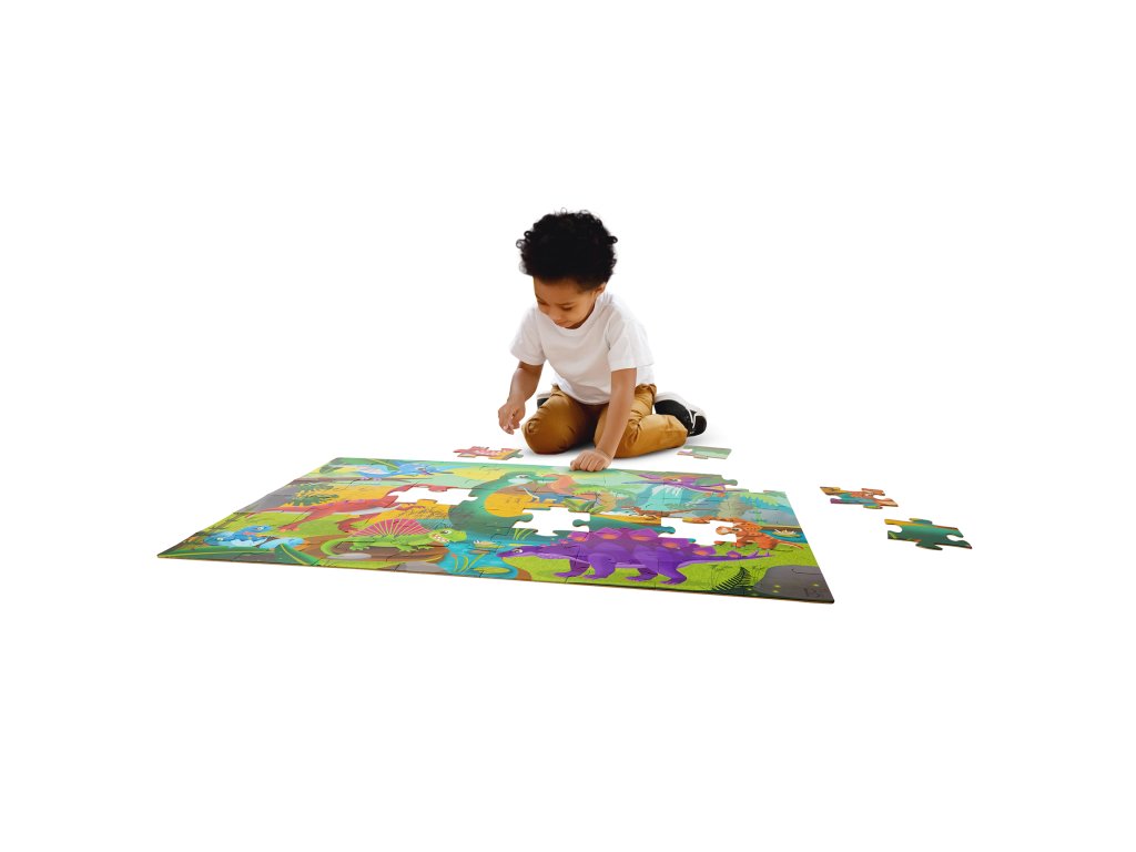 Pripravte sa na cestu do praveku s maxi puzzle s krásnymi ilustráciami dinosaura a jeho priateľov! Extra veľké diely z pevného kartónu tvoria plochu 91,4 x 60,9 cm a sú tak ideálne na skladanie na podlahe.