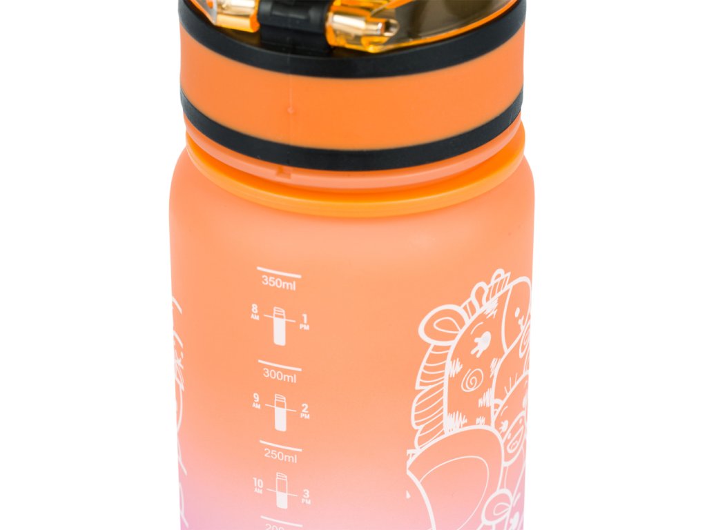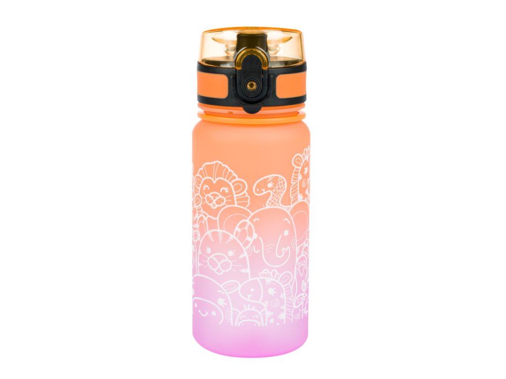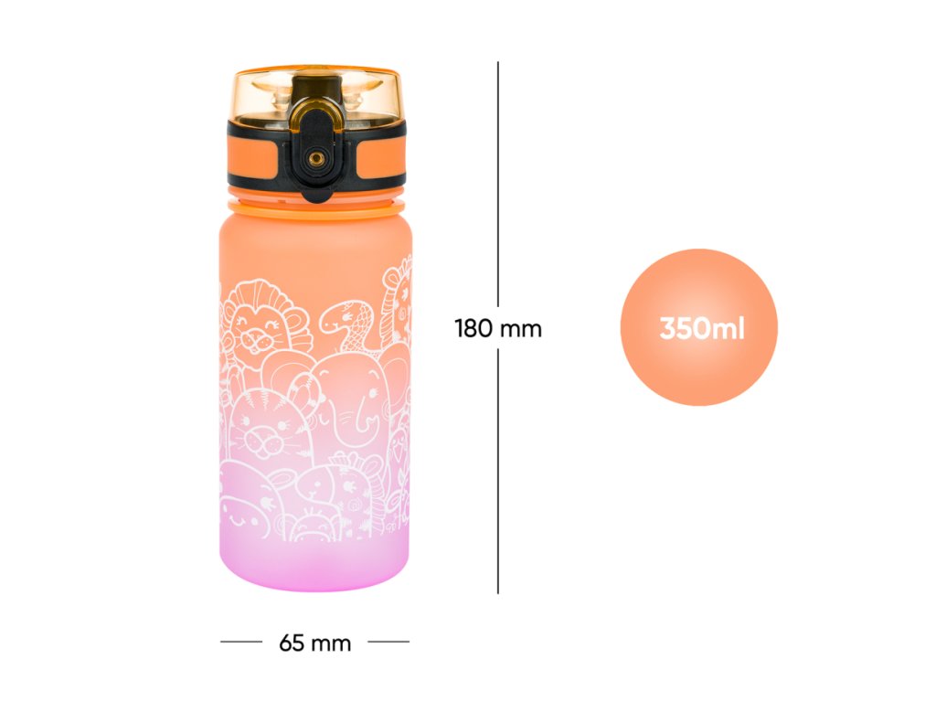 Tritanová fľaša pre deti Gradient Zvieratá 350 ml V školskej výbave nesmie chýbať poriadna fľaša na nápoje Fľaša od BAAGLa je vhodná ako do školy, tak aj na výlety alebo na športový krúžok. Uzamykateľné viečko neprepustí ani kvapku nápoja a zabezpečuje jednoduchú a intuitívnu manipuláciu. Súčasťou fľaše je sitko, vďaka ktorému môžete fľašu použiť i na limonády s ovocím alebo čaj (materiál je vhodný aj na horúce nápoje). K fľaši je pripevnené pútko, ktoré umožňuje pohodlné nosenie v ruke.Certifikovaný tritánový materiál zaručuje maximálnu bezpečnosť a kvalitu nápoja Nevydáva nepríjemný plastový zápach, ako je to pri iných plastových materiáloch, a zároveň neobsahuje žiadne zdraviu škodlivé látky (BPA, PVC, ftaláty, či iné). Ostatne, výrobky z tritánu sa používajú aj v zdravotníctve. Používaním fľaše znížite plastový odpad z jednorazových PET fliaš a pomôžete tak znížiť objem vyprodukovaného plastového odpadu, ktorý doteraz končí prevažne na skládkach, v spaľovniach, alebo často aj v prírode.Objem fľaše je 350 ml.