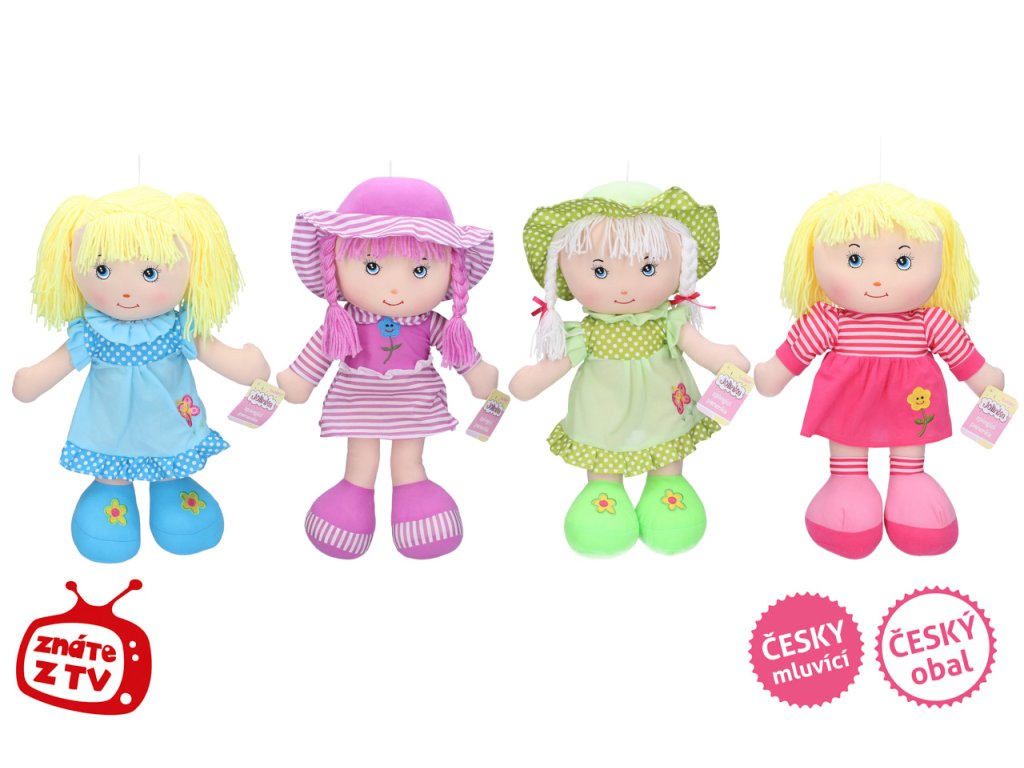 Ahoj, ja som tvoja bábika Julinka a budeme si spievať! Stačí stlačiť bruško a zaspievam ti 6 českých pesničiek! Bábika Julinka bude tvojou novou kamarátkou, s ktorou sa naučíš najznámejšie pesničky a užiješ srandu! Tak ktorú si vyberieš? Látkovú bábiku s roztomilou tvárou, veľkými kukadlami, krásnymi šatami a vláskami z vlny si obľúbia všetky malé slečny! Vďaka mäkkému telíčku aj hlavičke môže byť kamarátkou nielen pri hraní, ale aj pri zaspávaní! Pesničky: Travička zelená... Kočka leze dírou... Červený šátečku... Prší, prší... Já do lesa nepojedu... Holka modrooká... Rozmer bábiky (v): 55 cm. Batérie 3xAG13 sú súčasťou. Jazyk: čeština. Vek: 0+