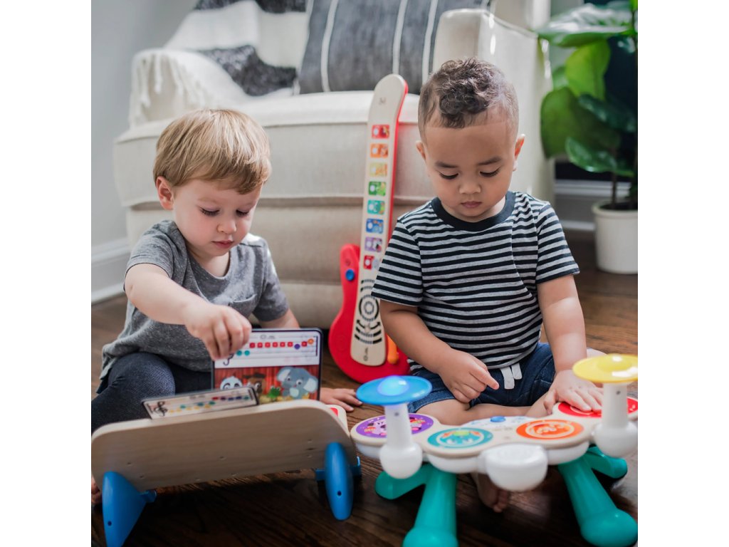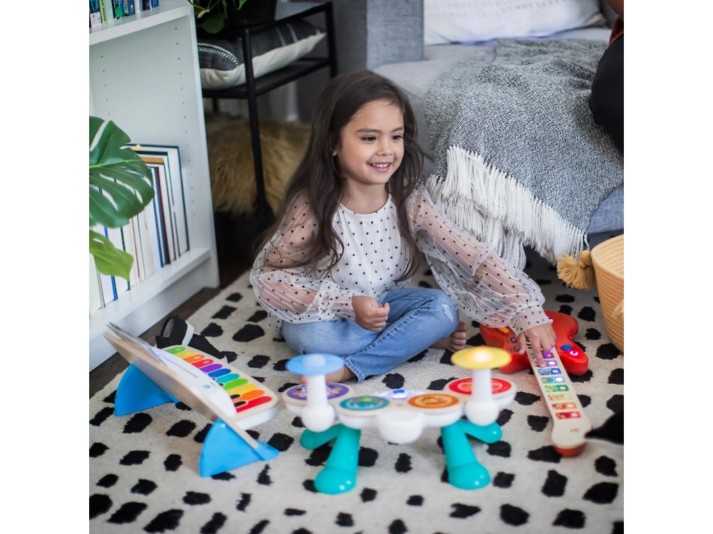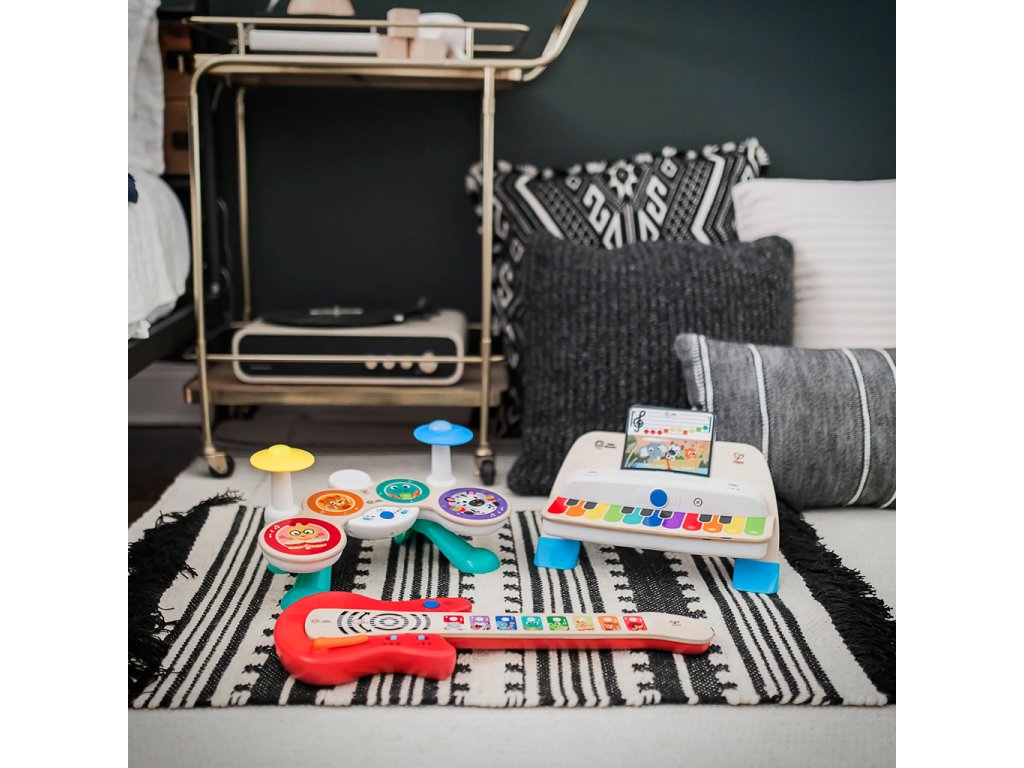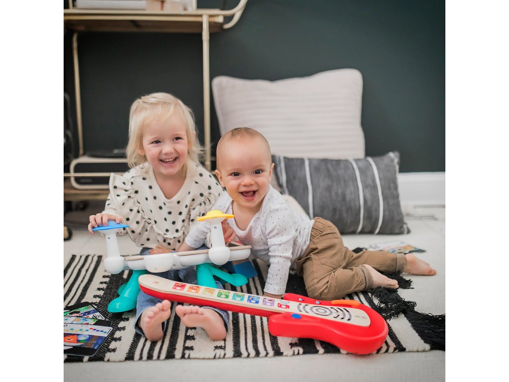 Chcete naučiť svoje deti hrať sa spolu v harmónii? Together in Tune Guitar™ je drevená hudobná hračka, ktorá im umožňuje džemovať samostatne alebo spolu so súrodencami a priateľmi. Bezdrôtovo sa pripája k ostatným nástrojom Together in Tune™ v dosahu a automaticky sa harmonizuje, čím vytvára nádhernú hudbu, ktorú si mama a otec užijú rovnako ako ich dojčatá a batoľatá. Bezpečné bezdrôtové spojenie medzi prístrojmi funguje ako vysielačka cez rádiové signály. Táto detská gitara v spolupráci medzi Hape™ a Baby Einstein™ podporuje rozvoj jemných motorických schopností. Technológia Magic Touch™ spája trvanlivosť a hodnotu klasickej drevenej hračky s najnovšou technológiou hudobných hračiek súčasnosti. Dokonca aj najjemnejšie poklepanie na celú oktávu farebných maľovaných pražcov vydáva skutočné gitarové zvuky. Táto detská gitara Baby Einstein, ktorá obsahuje 4 režimy (režim objavuj; režim predvádzania; režim hrania; režim kapely) a 10 populárnych melódií, dáva dieťaťu slobodu vytvárať si vlastné beaty, vrstviť riffy a jednoduché zvuky, rozhýbať sa a ovládať svoje obľúbené piesne. Ak hľadáte hudobnú hračku ako darček na oslavu bábätka alebo na prvé narodeniny, toto je tá správna. Vďaka drevenému dizajnu bez gombíkov sa táto hračka pre batoľatá mimoriadne ľahko čistí. Zahŕňa ovládanie hlasitosti Vypnúť/Nízka/Vysoká. Vhodné pre batoľatá a deti od 6 mesiacov.