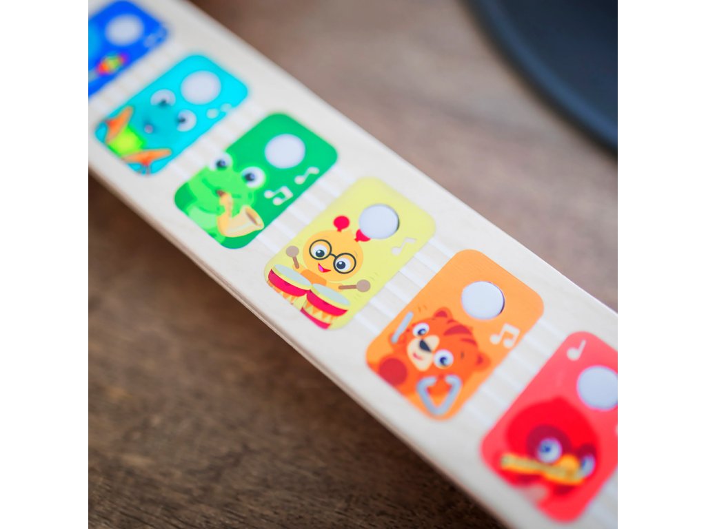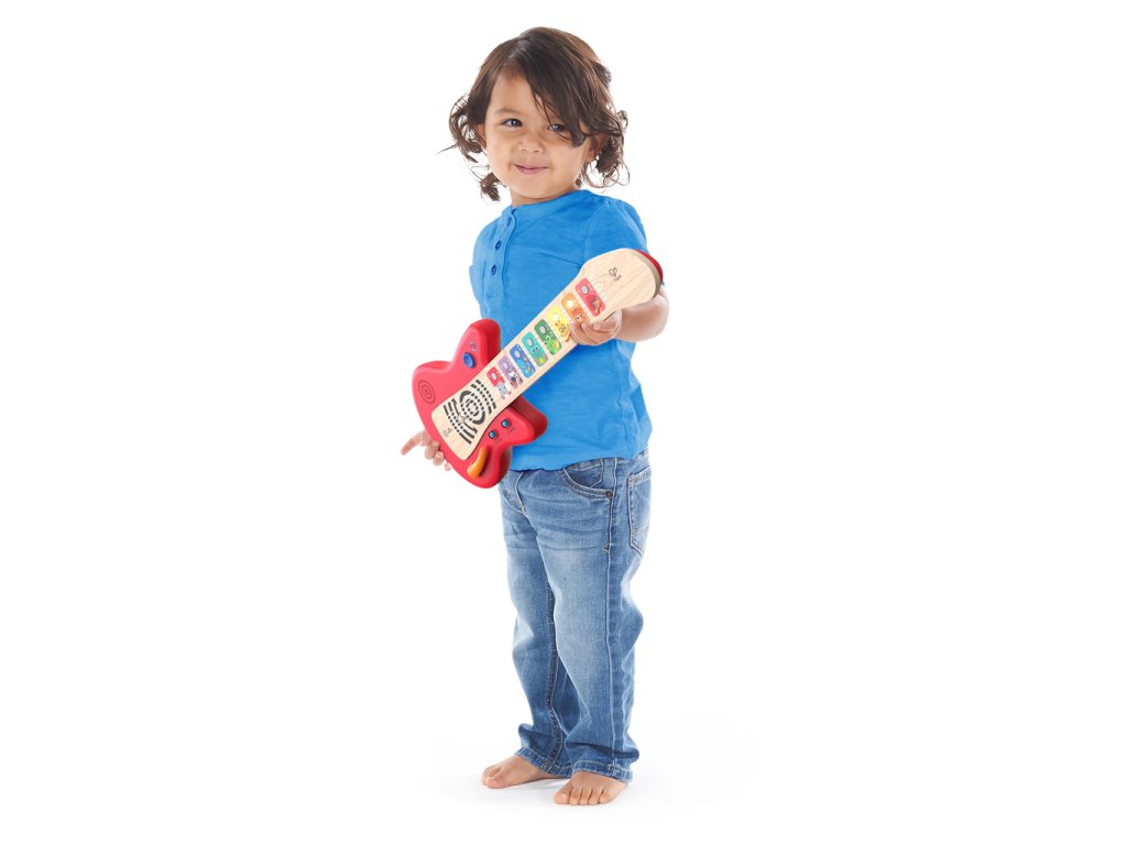 - Oceňovaná technológia Magic Touch™ – Všetka trvanlivosť a pamätná hodnota klasickej drevenej hračky, povýšenej pomocou najnovších technológií. Dokonca aj najjemnejšie poklepanie na farebné maľované pražce vydáva skutočné gitarové zvuky.