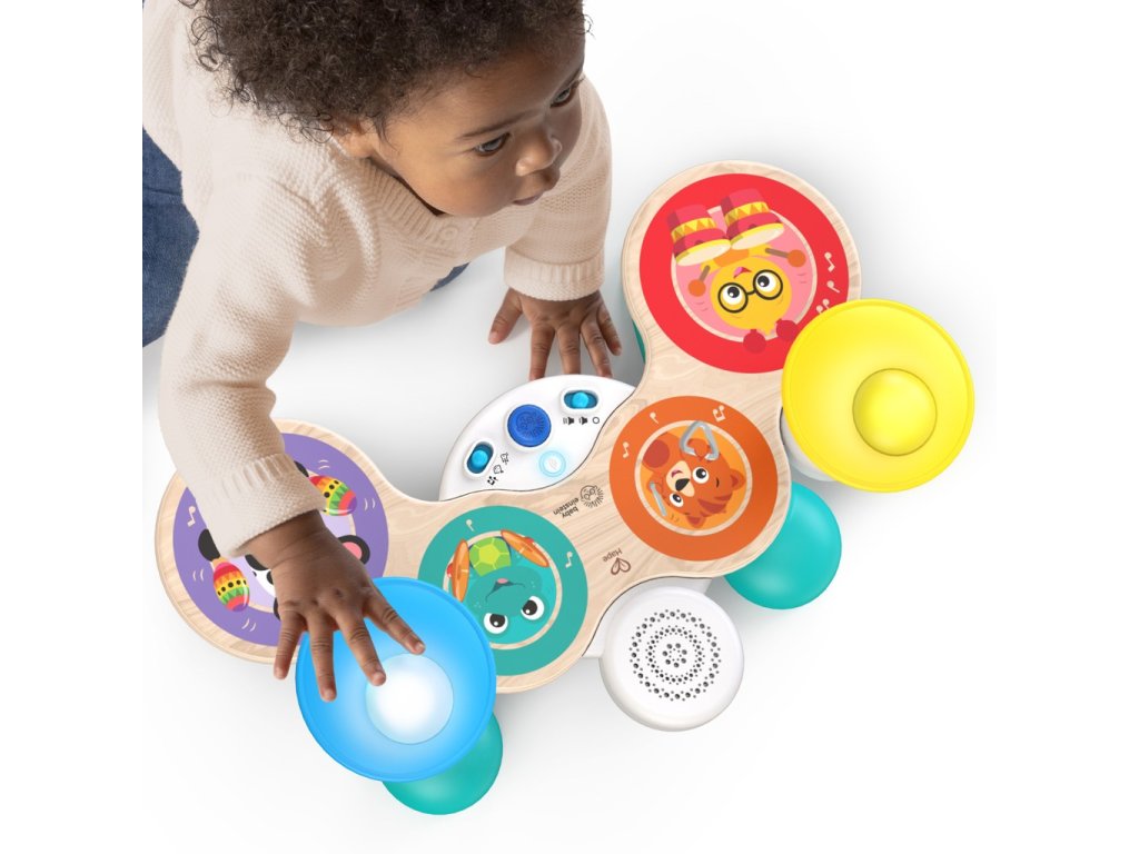 - Podnecuje spoločné hranie a spoluprácu – Bábätko môže hrať na bubny samo, alebo spolu s priateľmi a súrodencami vďaka bezdrôtovému pripojeniu k iným nástrojom z rady Together in Tune™ Connected Magic Touch™ v dosahu.
