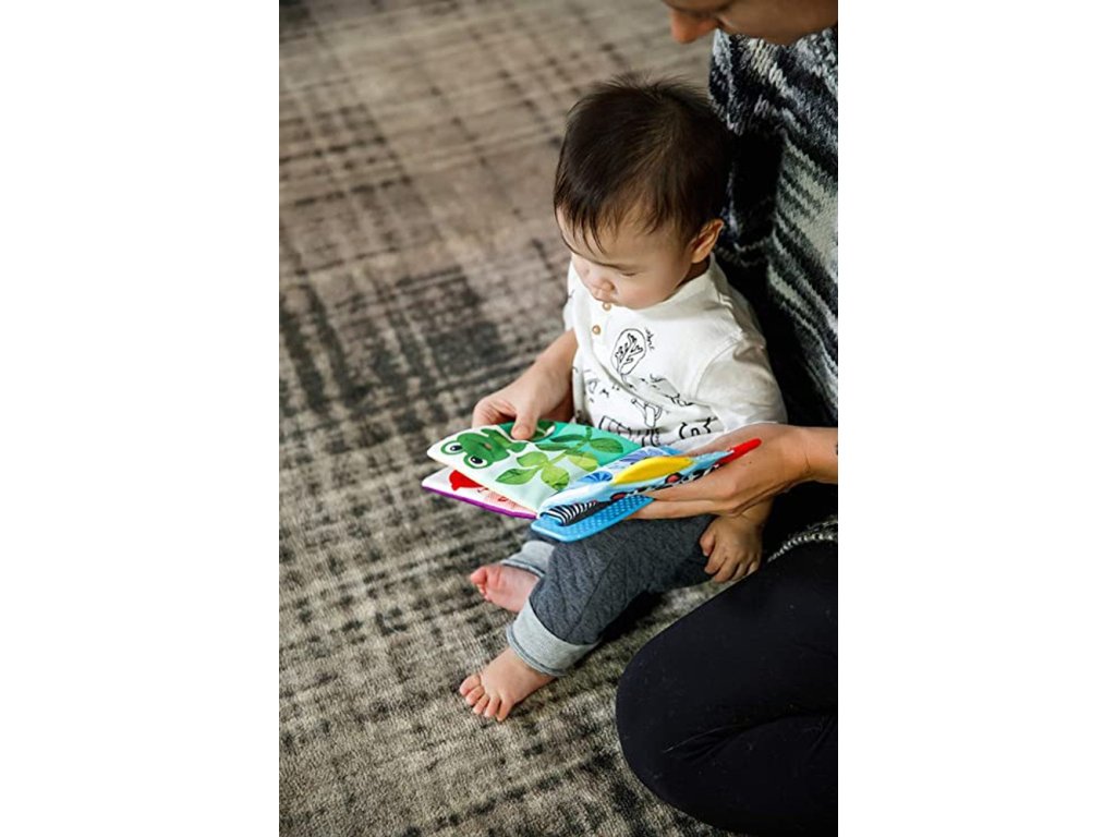 Vďaka mäkkej textúre a tvaru sa dieťatku ľahko drží aj v malých rúčkach. Vrúbkované textúry na rohoch knižky sú navrhnuté tak, aby masírovali boľavé ďasná počas prerezávania prvých zúbkov. Vďaka ľahko uchopiteľnej rukoväti si vaše dieťa môže vziať túto farebnú knižku všade so sebou.