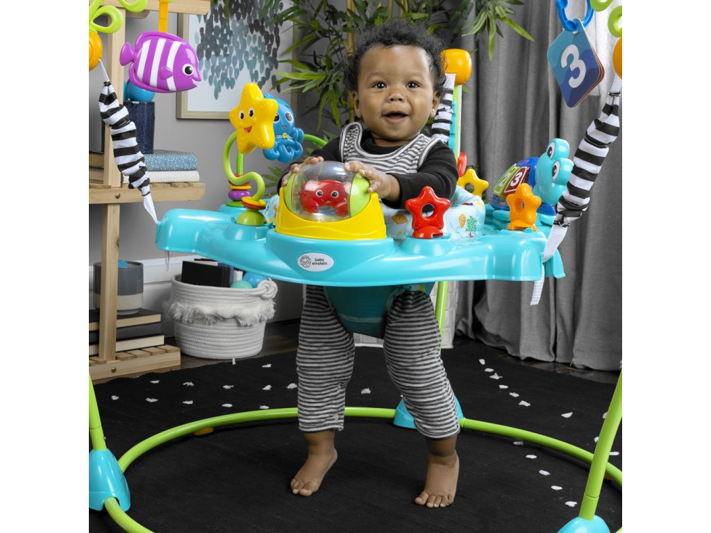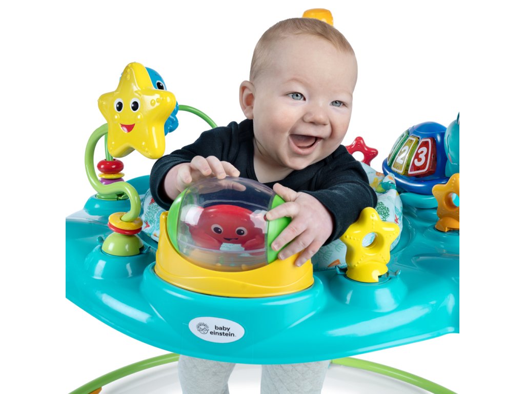 - Skákadlo s aktivitami 2 v 1 Baby Einstein Curiosity Cove je určené pre deti od 6 mesiacov do 1 roka a podporuje zmyslový rozvoj pomocou svetiel, hudby a zvukov oceánu.