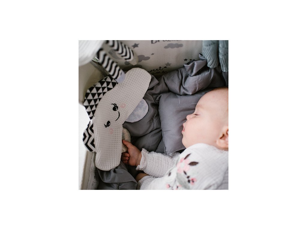 Plochý plyšák je skvelý spôsob ako stimulovať rozvoj zmyslov dieťatka hrou. Je to kamarát na hranie aj hračka na maznanie. Hračka je vyrobená z mäkkej, jemnej bavlnenej látky, ktorá podporuje rozvoj kognitívnych schopností dieťatka. Výrazné časti a rôzne textúry stimulujú jemnú motoriku. Zaujímavý zvuk plyšovej hračky stimuluje sluch. Kontrastné farby a priateľská silueta hračky stimulujú zrak. Tento plochý plyšák je súčasťou kolekcie Babyono Blink&Smile.