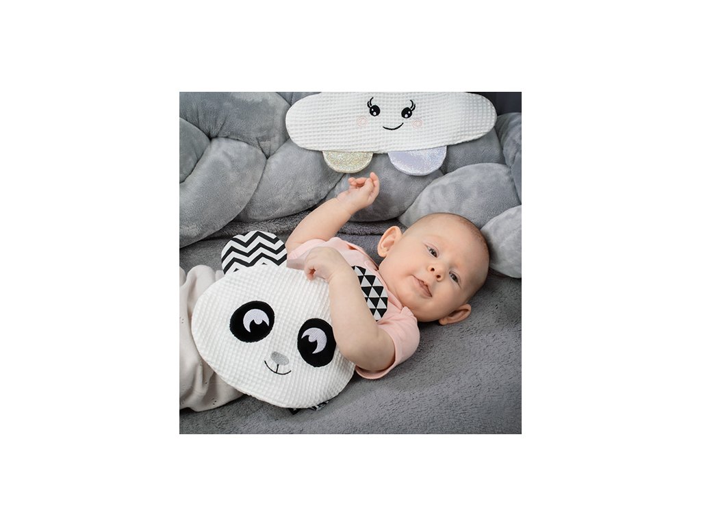 Výrazné štítky a uši pandy podporujú rast motorických schopností dieťatka. Poskytujú dodatočnú zmyslovú stimuláciu, čím zvyšujú kognitívne schopnosti.