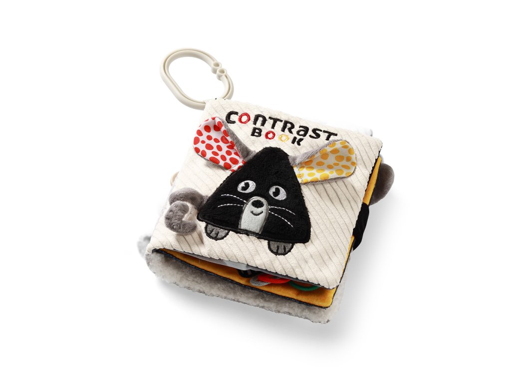 Priateľská myška v kontrastných farbách vás pozýva na hranie. Mäkká senzorická kniha pre bábätká zapája ich zmysly od prvých mesiacov života.