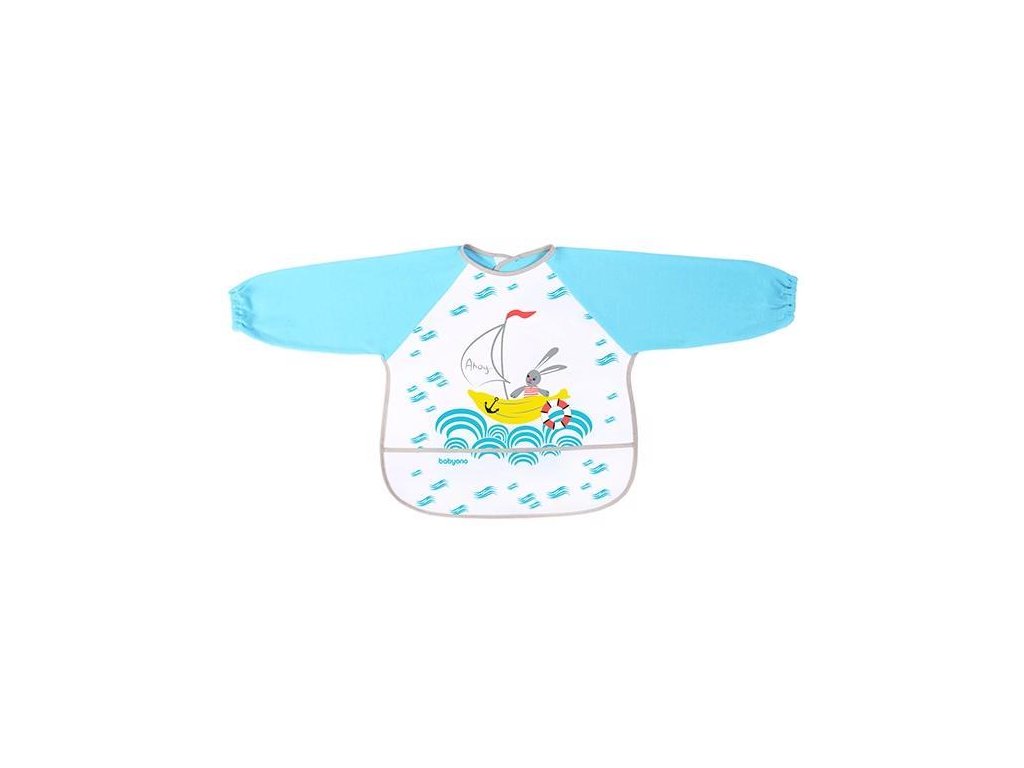 BABYONO Podbradník s dlhým rukávom modrý 24m+, 35x40 cm