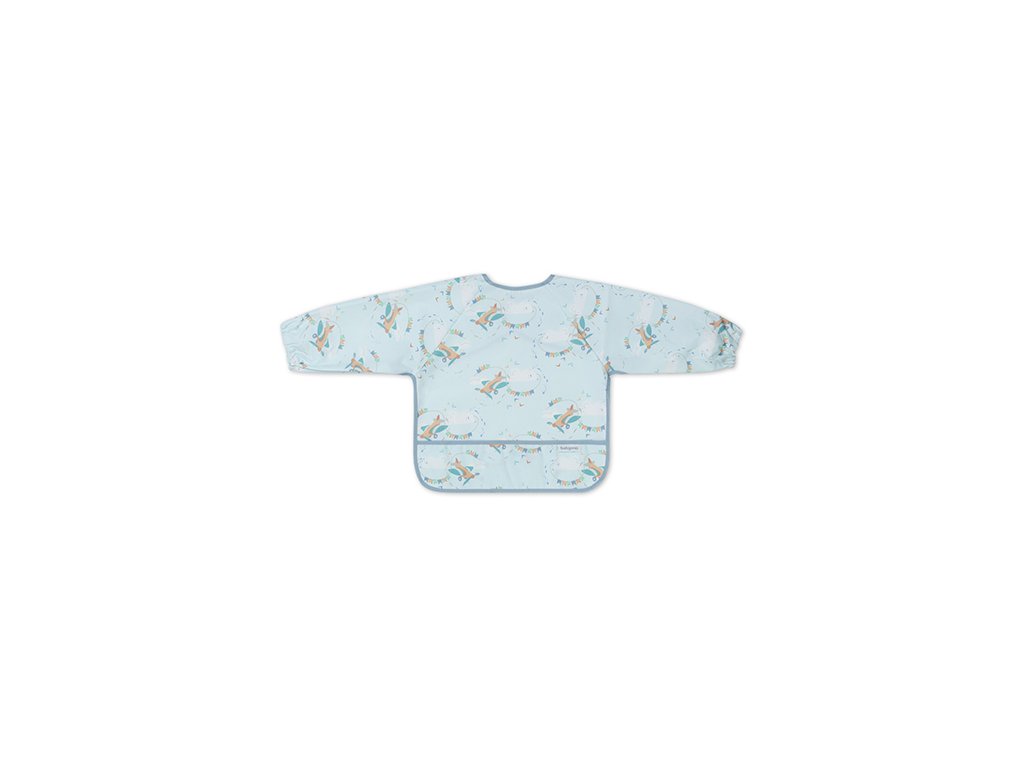 Podbradník s dlhým rukávom je šikovný pomocník, ktorý ochráni oblečenie Vášho bábätka. Počas jedenia zaisťuje prednú časť oblečenia aj rukávy, ktoré sa zvyknú zašpiniť. Vďaka pružným gumičkám dobre priľne k malým ručičkám bábätka. Podbradník s rukávmi má aj praktické vrecko na omrvinky, ktoré zachytáva zvyšky jedla. Zástera s rukávmi je vodeodolná a ľahko sa čistí, takže sa osvedčí, keď sa dieťatko učí jesť samo. Zapínanie podbradníka môžete ľubovoľne prispôsobiť veľkosti krku bábätka.