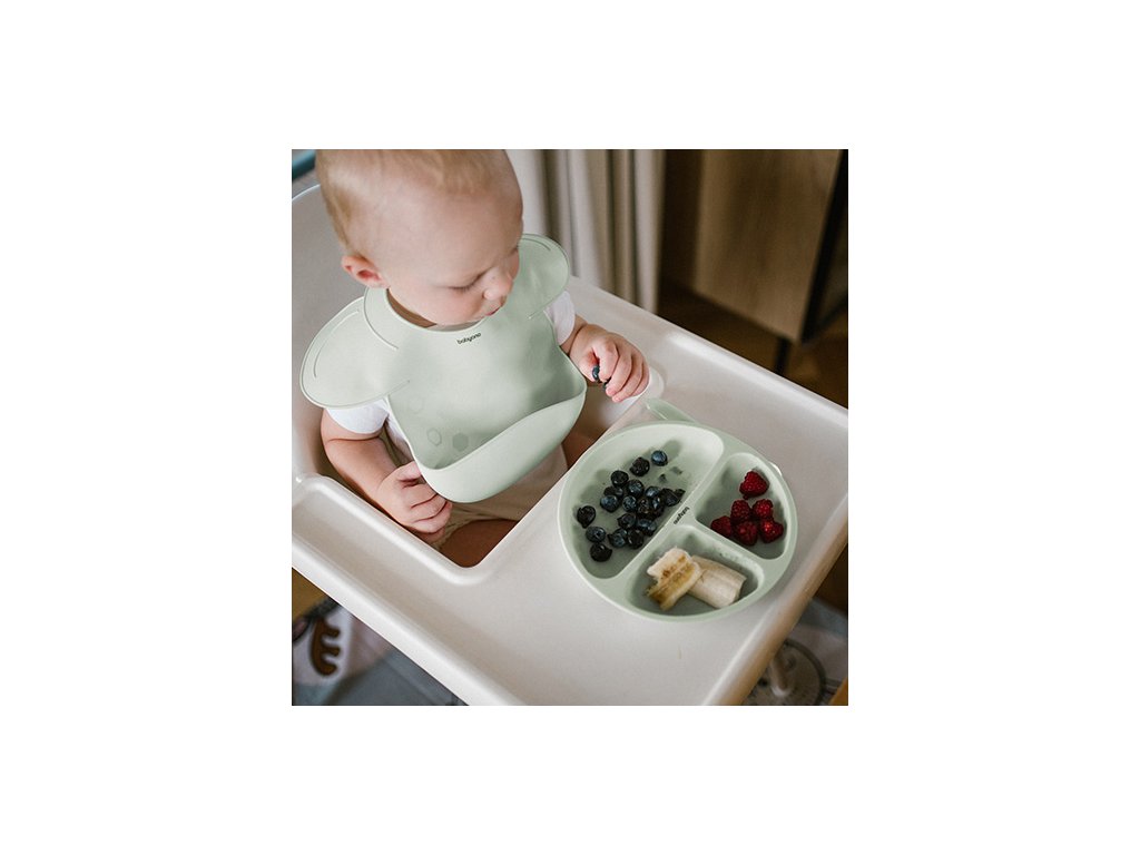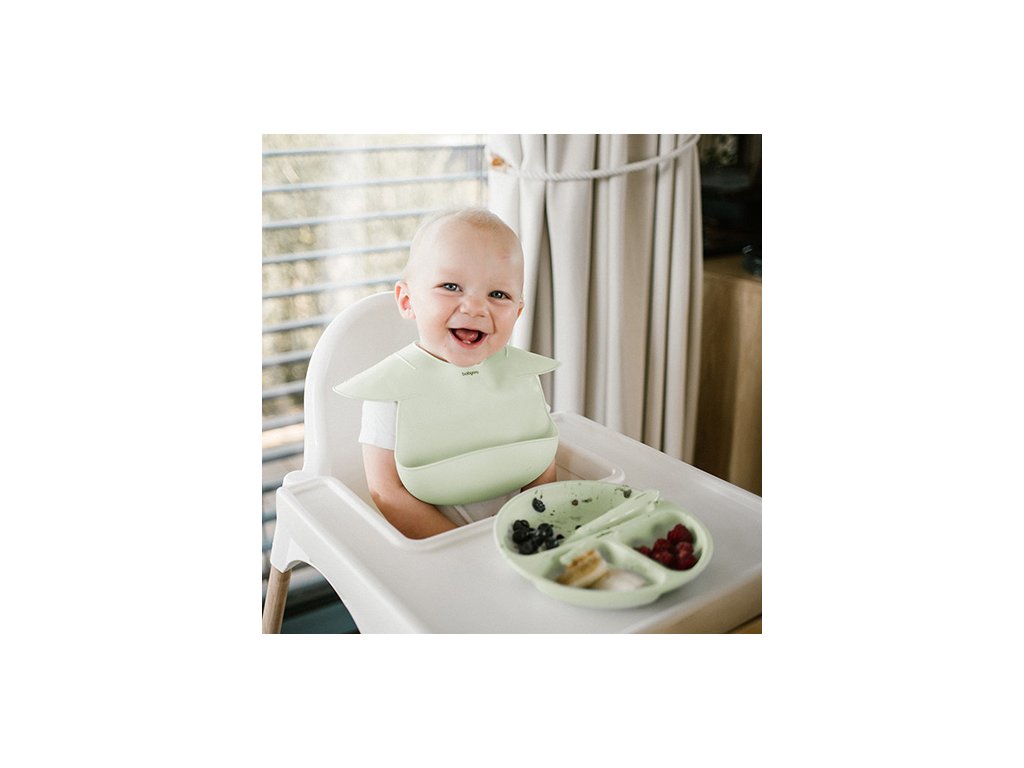 Silikónový podbradník sa dokonale prispôsobí tvaru dieťaťa, čím mu poskytuje pohodlie. Vďaka zaobleným okrajom podbradník chráni väčšiu časť oblečenia dieťaťa pred znečistením. Ideálny na objavovanie nových chutí bez obáv z nečistôt.