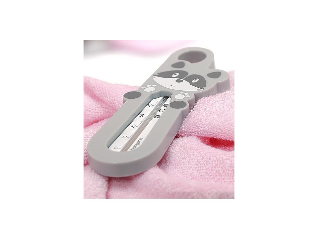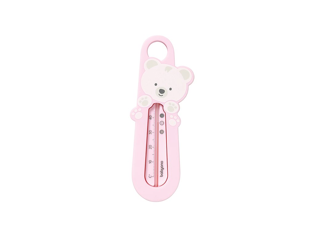 Teplomer do vody je veľmi dobrým pomocníkom pri kúpaní novorodencov. Bezpečne a spoľahlivo Vám pomôže dosiahnuť a udržať správnu teplotu kúpeľa pre vaše dieťatko. Veľká a čitateľná stupnica uľahčuje odčítanie správnej teploty vody. Vďaka ľahkému dizajnu teplomer pláva na hladine vody, čím aj umožňuje plynulú reguláciu teploty. Správna teplota vody by mala byť 37 °C a je označená na stupnici usmievajúcim smajlíkom. Teplomer je úplne bezpečný, vďaka parafínu, ktorý je vložený do bezpečnostnej trubičky.