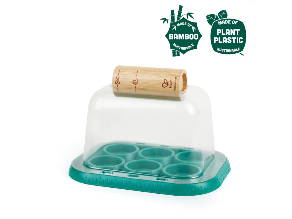Táto nádherná skleníková hracia sada Bamboo pomáha deťom poznávať prírodu a pestovať si vlastné rastliny. Zasaďte semená podľa vášho výberu do skleníka a starajte sa o ne, kým nebudú pripravené na presádzanie von. Vaše dieťa môže pomocou tejto sady na vlastnej koži zistiť, ako zábavná príroda môže byť. Pomocou priloženej bambusovej formy vytvorte malé, rozložiteľné, papierové vázy na všetky semená, ktoré chcete pestovať, a potom sa o ne starajte, dokiaľ nebudú pripravené na presádzanie von. Priehľadný kryt pomáha udržiavať vaše semená v teple a na svetle. Vaše dieťa sa na základe pokusov a omylov dozvie viac o tom, ako svetlo, voda a teplo spôsobujú, že rastliny rastú. Sledujte, ako vďaka tomuto procesu rastie ich láska k prírode a pocit zodpovednosti. Sada je vhodná pre deti od 4 rokov. Táto sada je úplne ekologická. Je vyrobená z udržateľného bambusu, bioplastov a všetky potrebné materiály sa prirodzene rýchlo rozkladajú. Rozmer balenia: 22,7 x 15,7 x 17,2 cm. Video: https://www.youtube.com/watch?v=74faBtIXyGI