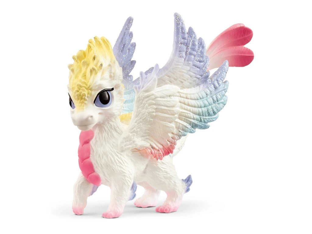 Malý dúhový dráčik dokáže vo svete BAYALA® svojimi mávajúcimi krídlami vytvárať krásne dúhy. Dúhový dráčik má najradšej daždivé dni, ale rovnako si užíva aj tie slnečné. Najlepšie sú tie dni, kedy prší a svieti slnko zároveň, pretože vtedy sa objaví dúha. Malý dúhový dráčik sa už nemôže dočkať, až vyrastie a preletí sa nad svetom BAYALA® ako veľký dúhový drak. Dúhový dráčik s veľkými fialovými očami vyzerá ako úplné neviniatko. Ale nenechaj sa zmiasť, tento drobček sa vie poriadne oháňať. Napriek tomu, ako roztomilo so svojou citrónovo žltou chocholkou vyzerá. Vďaka lesklým krídlam dokáže obratne lietať po oblohe sveta BAYALA®, robiť na oblohe saltá a vykonávať najrôznejšie triky. Až vyrastie, dokáže dokonca na oblohe namaľovať dúhu! Kto by to bol povedal. Dúhový dráčik je síce ešte malý, ale keď prelieta svetom BAYALA®, tak už teraz priťahuje pozornosť všetkých naokolo. Jeho biely plášť zdobia všetky farby dúhy: Na hlave má citrónovo žltú chocholku, cez hruď ružový pruh a špičky krídel sa mu trblietajú ružovo, svetlo modro a tyrkysovo. Krása, ktorá berie dych. Tento výrobok schleich® patrí do tematického sveta BAYALA® a je vhodný pre deti vo veku od 5 do 12 rokov. Rozmery figúrky: 7,4 x 6,4 x 9,7 cm.