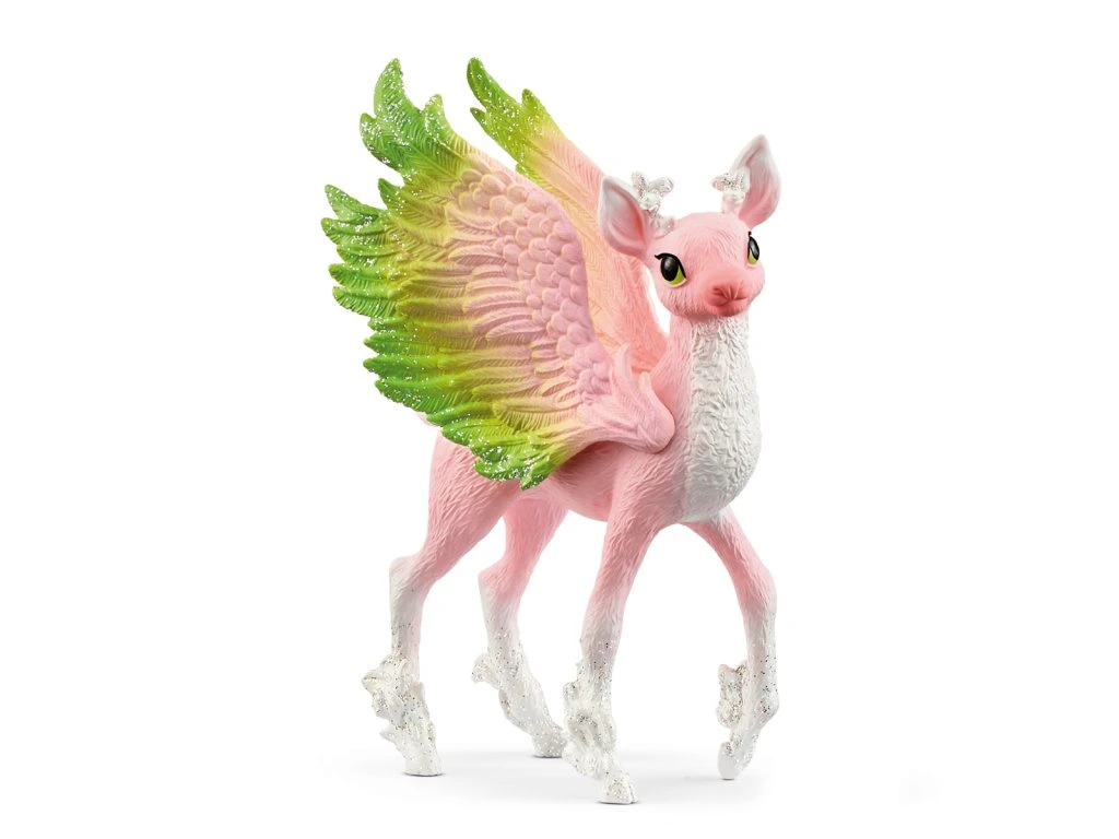 Malé kúzelné jelenča vyrastá v kúzelnom lese BAYALA®. Až vyrastie, chce sa stať ochrancom kúzelného lesa. Kúzelné jelenča sa nemôže dočkať, kým vyskúša svoje krídla – jedného dňa vyletí až nad najvyšší strom vo svete BAYALA®! Kúzelné jelenča sa zasnene pozerá do diaľky veľkými, žiariacimi očami. Čo sa mu asi práve teraz naháňa hlavou? Natiahne svoj roztomilý ružový ňufáčik do vzduchu a roztiahne nádherné krídla. Malo by trénovať lietanie, ale teraz sa chce len hrať. Už netrpezlivo prehrabuje lesnú pôdu drobnými kopýtkami. Kto sa príde hrať? Kúzelné jelenča vyzerá jednoducho rozkošne. Jeho srsť je ružová, len nohy a hruď sú jasne biele. Na chrbte má veľké ružové krídla so zelenými špičkami. Keď sa pozrieš pozorne, uvidíš na jeho hlave aj drobné parožie. Až vyrastie, bude určite veľkolepé! Tento výrobok schleich® patrí do tematického sveta BAYALA® a je vhodný pre deti vo veku od 5 do 12 rokov. Rozmery figúrky: 10 x 5,1 x 6 cm.
