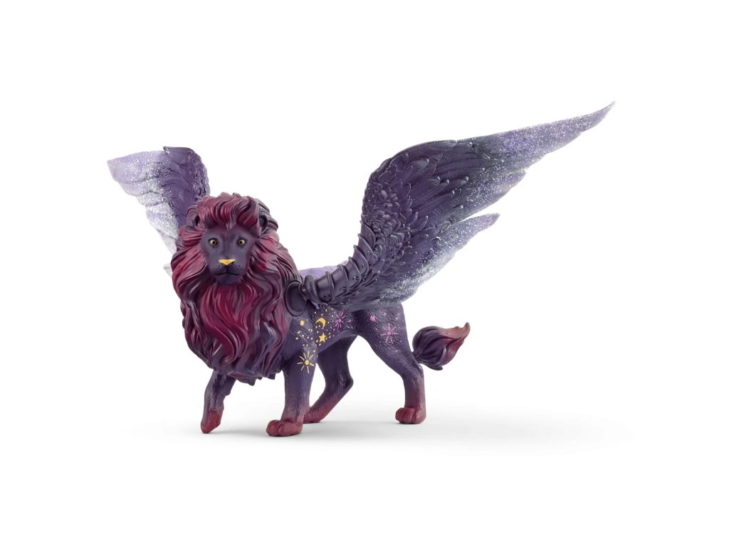 Mesačný lev je dokonalým spoločníkom počas temnej noci. Vďaka svojim svetelným schopnostiam dokáže posvietiť na cestu, čím svojim spoločníkom v noci dosť pomôže. Čo je to za zvuk? Z diaľky počuješ, ako sa blíži priateľský mesačný lev, ktorého mohutné krídla sa mihajú po nočnej oblohe. Mesačný lev prelieta stemneným svetom BAYALA® a na všetko dohliada. Vždy sa riadi vlastným nosom. Kým krúži na oblohe nad svetom BAYALA®, môžeš mať istotu, že je všetko v poriadku. Všetci obyvatelia môžu pokojne spať. Žiari v tme rovnako ako mesiac. Mesačný lev je vo svete BAYALA® pánom noci. Jeho tmavý kožuch zdobia fialové a zlaté hviezdičky - a dokonca aj špička nosa sa mu zlato leskne. Okolo hlavy mu veje bujná hriva. Ale jeho krídla sú najúžasnejšie. Stačí niekoľko mávnutí krídlami a vznesie sa vysoko do vzduchu. Pozri sa, aký je mocný a elegantný, keď prelieta svojou ríšou. Tento výrobok Schleich® patrí do tematického sveta BAYALA® a je vhodný pre deti vo veku od 5 do 12 rokov. Rozmery figúrky: 14,4 x 27,5 x 13,3 cm.