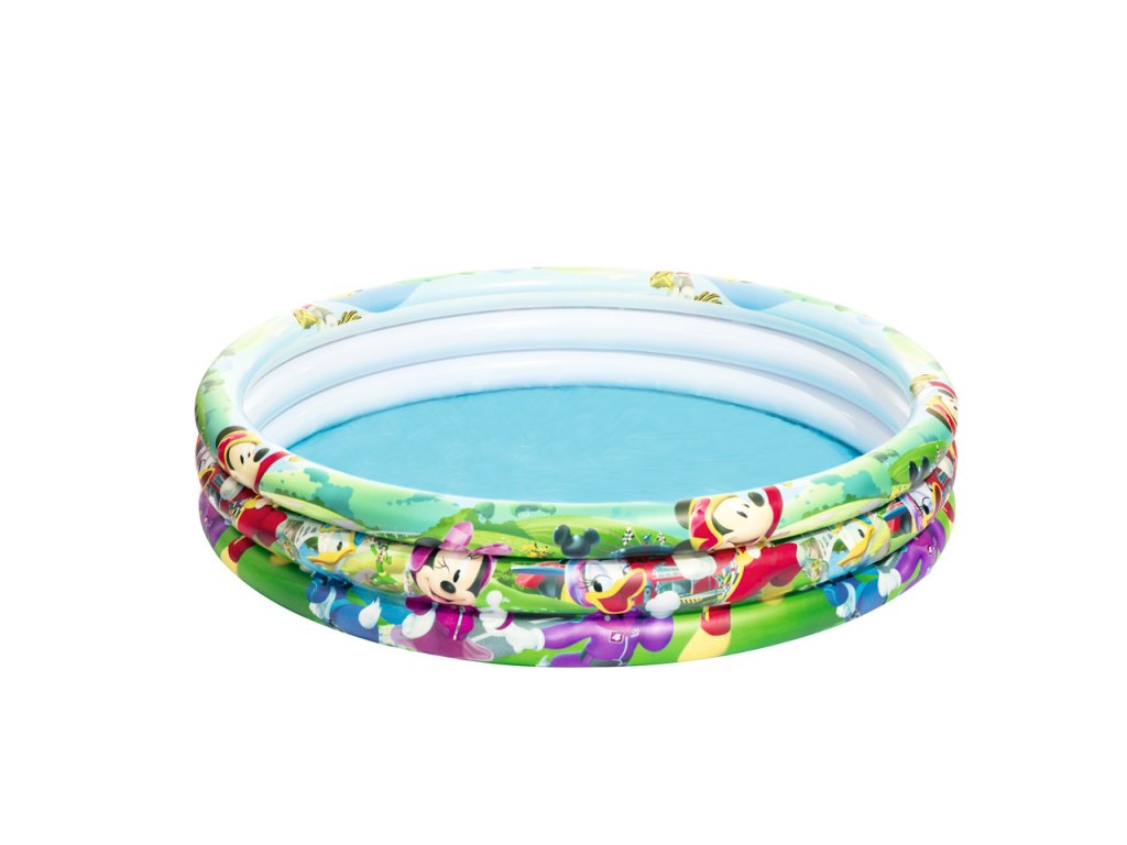 Detský nafukovací bazénik Bestway, ktorý sa hodí na každú záhradku. Tento nádherný menší bazénik je zdobený obľúbenými postavičkami od Walta Disney. Bazénik má 3 vzduchové komory a bezpečnostné ventily. Vyrobené z kvalitného a odolného vinylu. Rozmer: 122 x 25 cm. Max. kapacita vody: 140 l. Obsahuje: 1 detský bazénik, 1 opravná sada. Používajte len pod dohľadom dospelej osoby. Vek: 2+