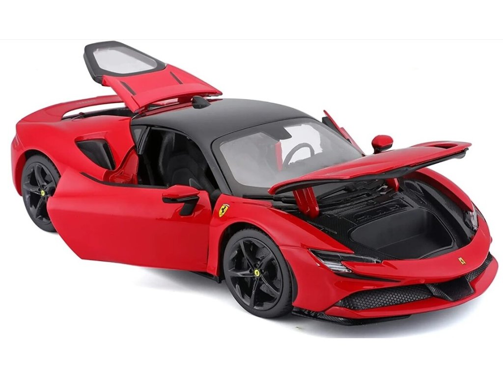 Kovový model auta 1:18 Ferrari SF90 Stradale Red pre zberateľov. Má otváraciu kapotu a dvere, natáčanie kolies volantom je plne funkčné. Farba modelu podľa obrázku.