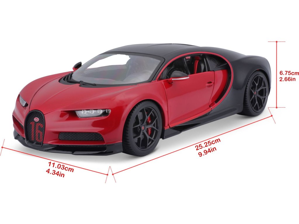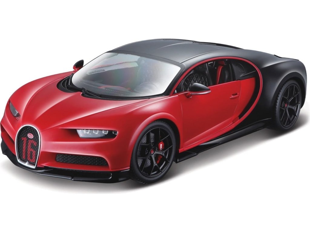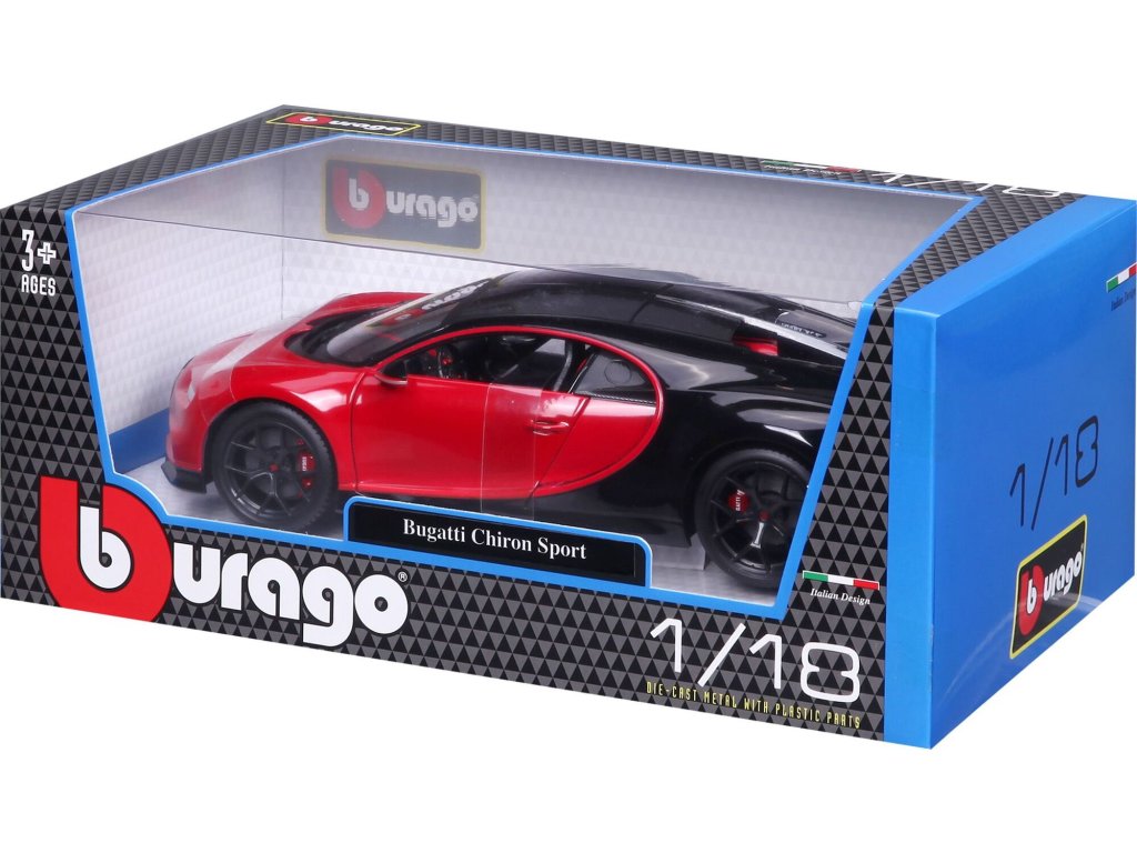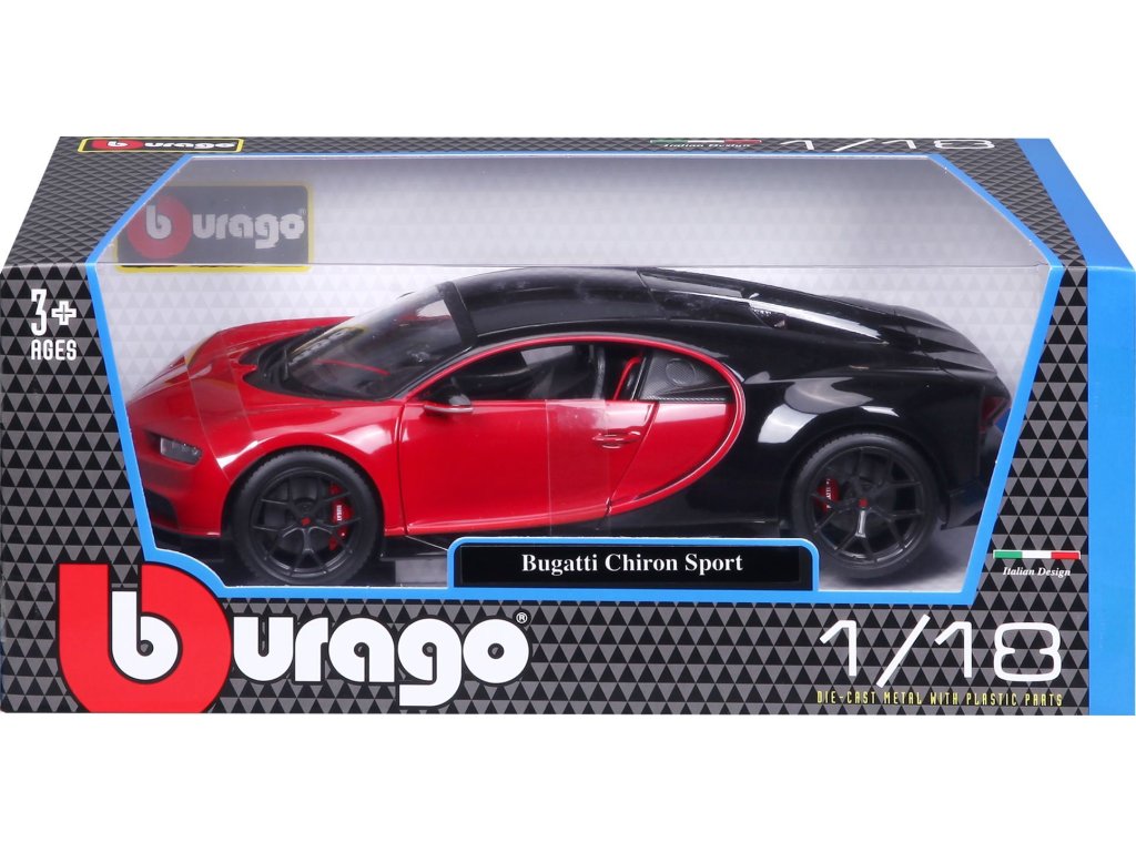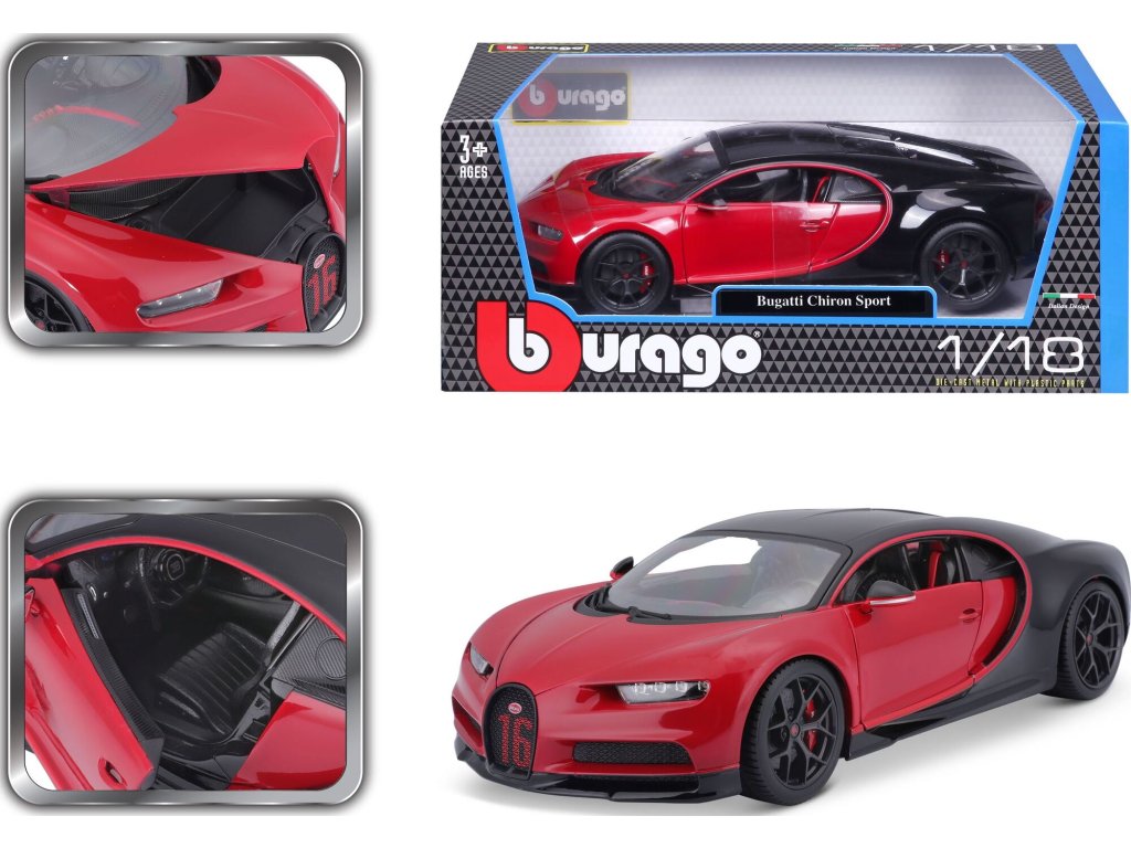 Bburago 1:18 Bugatti Chiron Sport (red) Model auta v mierke 1:18 vyrobený z kovových a plastových dielov.Balené v papierovej škatuľke s fóliovým priehľadom a popisom typu.Otváracie dvere, predná kapota, výsuvný spojler a natáčacie kolesá.Dĺžka modelu cca 25 cm.