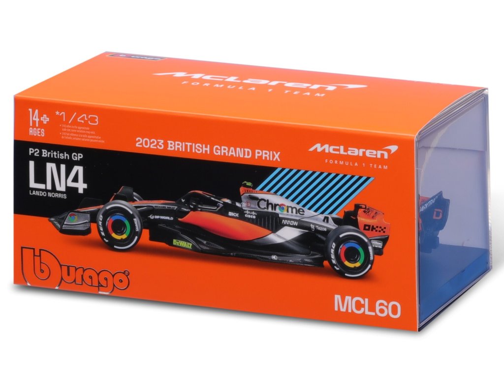Bburago 1:43 RACE Formula F1 - McLaren F1 Team MCL60 (2023) #4 (Lando Norris) - with driver and decorative box