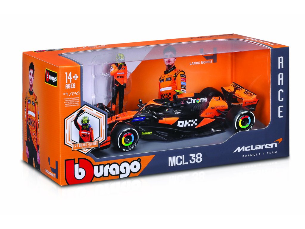 Bburago 1:24 RACE Formula F1 - McLaren F1 Team MCL38(2024) #81 (Oscar Piastr) -with driver