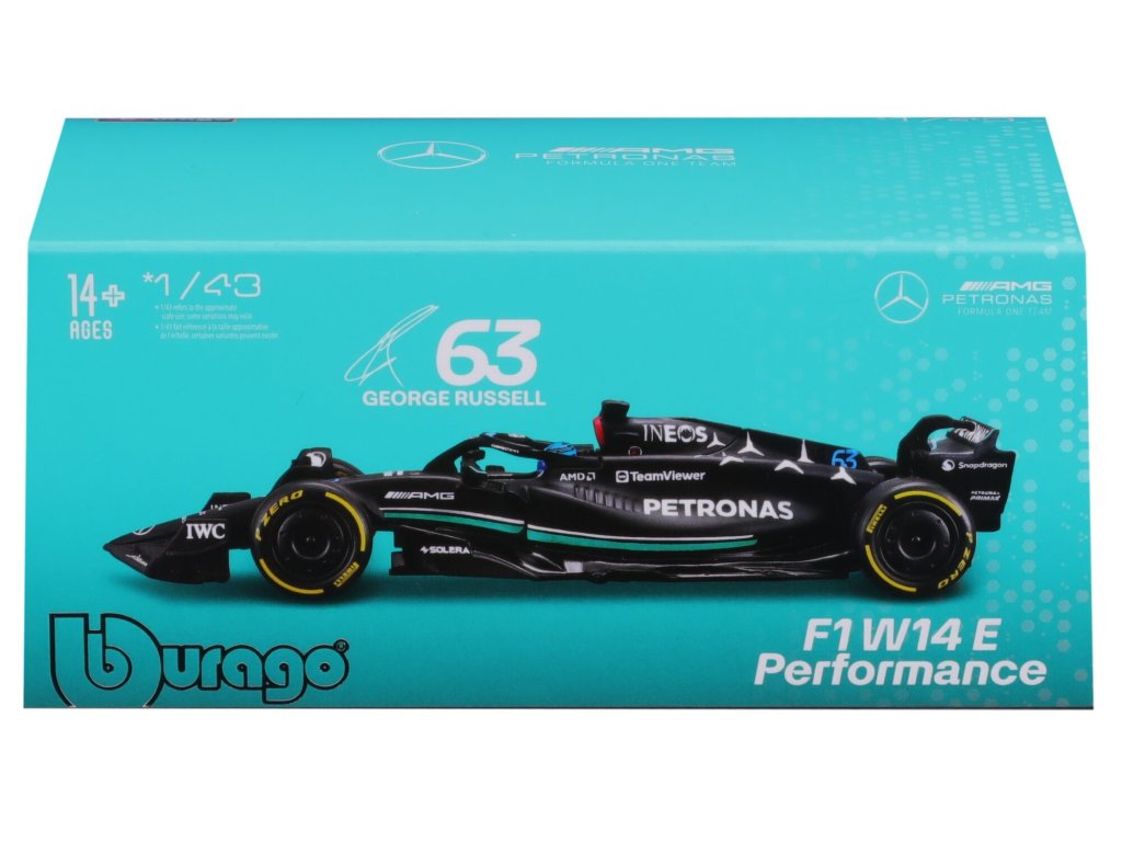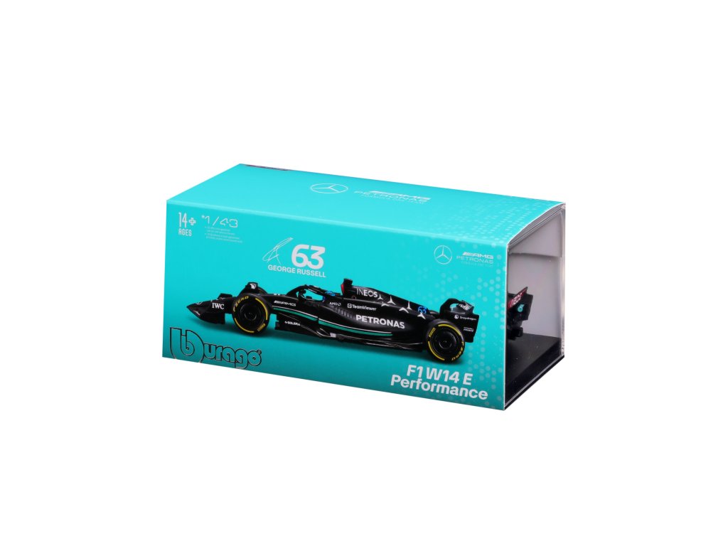 Bburago 1:43 RACE Formula F1 - Mercedes-AMG F1 W14 E Performance (2023) #63 (George Russell) - with driver and decorative box