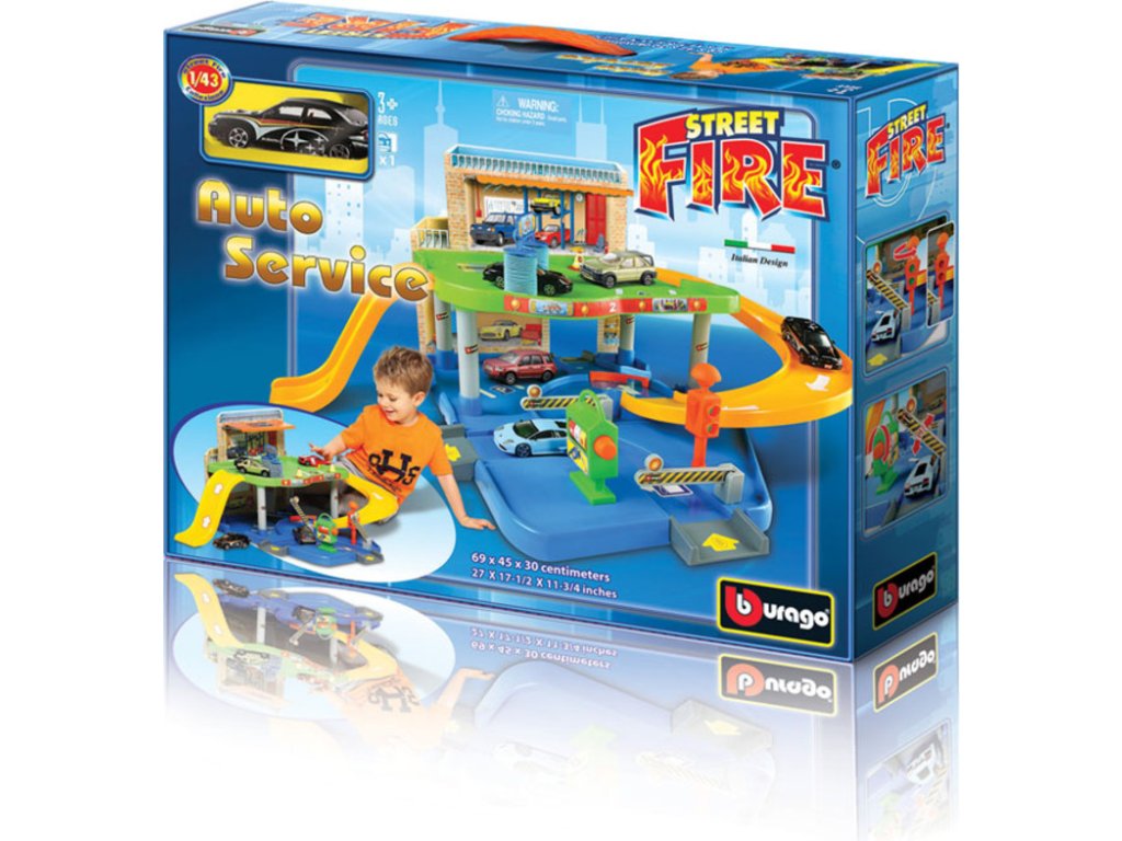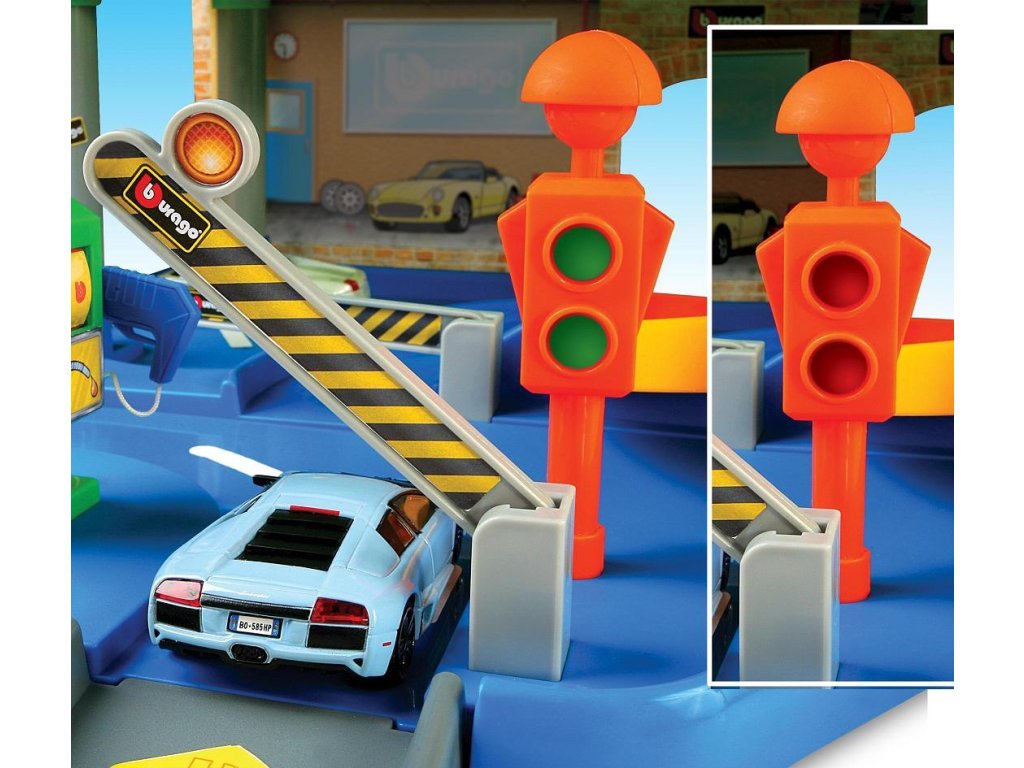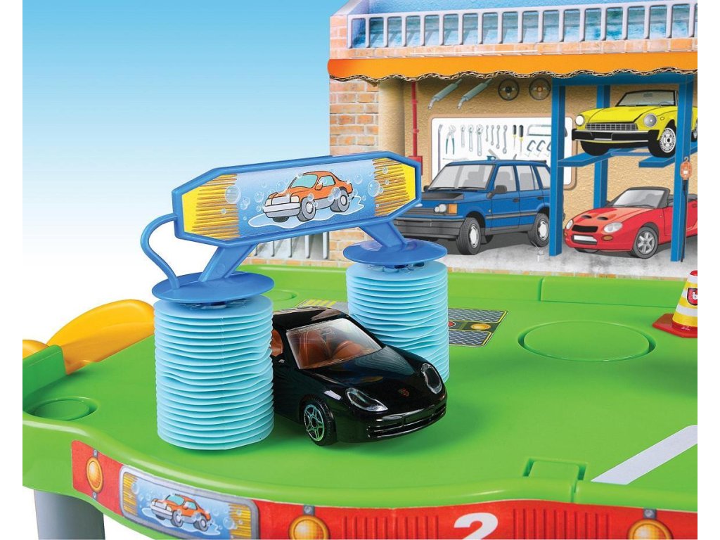 Bburago poschodová garáž s autoservisom 30039, výrobca BBurago. Skladacia poschodová garáž obsahuje všetko, čo bude malý opravár k hre potrebovať. Súčasťou je: autoopravovňa, cesta, rampa, pumpa, umzvárka...V balení je aj jedno autíčko Bburago v mierke 1:43.Rozmer garáže je 69x45x30 cm. Pre deti do 3 rokov