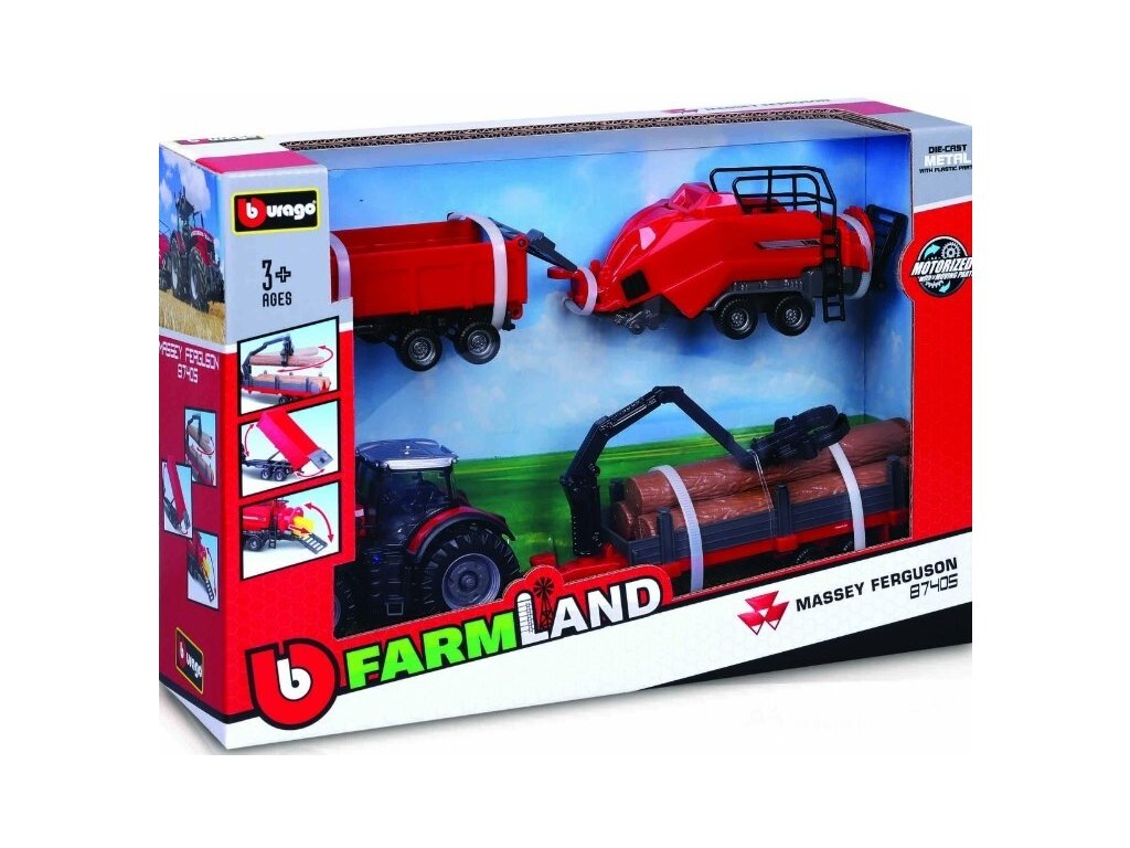 Bburago 10cm Farm tractor Gift Set - Massey Ferguson 8740S with 3 trailers