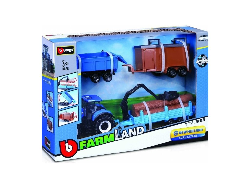 Bburago 10cm Farm tractor Gift Set - New Holland T7.315 HD with 3 trailers