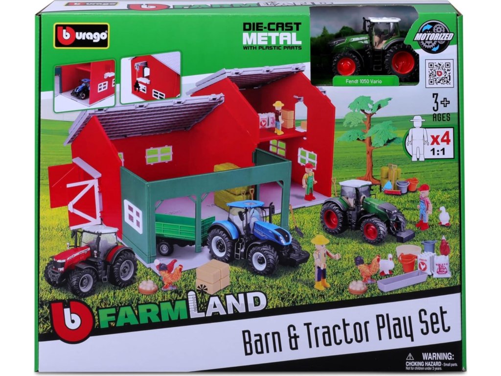 S farmou a traktorom je zaručená nekonečná zábava z hryVozidlo je replikou Fendt 1050 Vario a má veľkosť cca 10 cmTáto sada obsahuje štyri figúrky na hranie, štyri sliepky, početné farmárske príslušenstvo a traktorBburago - Kultová talianska značka Bburago je synonymom pre vysoko kvalitné vozidlá na hranie, ktoré zaručujú maximálnu zábavu z hryOdporúčaný vek: Farmová chata je vhodná pre deti od 3 rokov