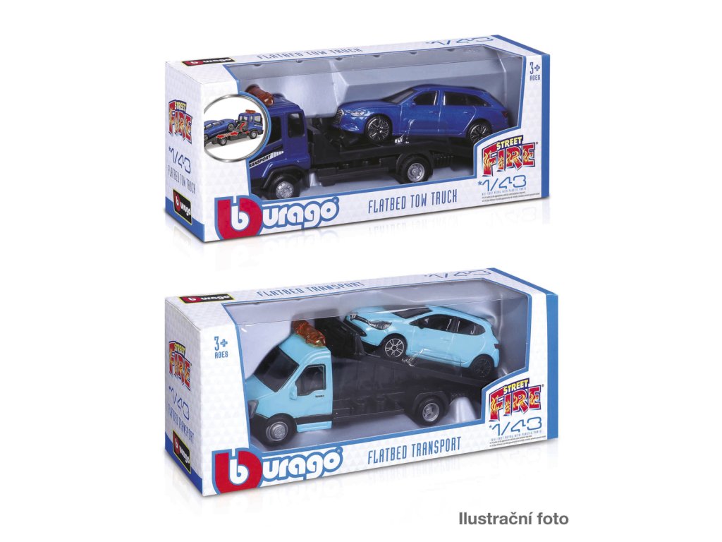 Bburago - Flatbed Transort a Tow Truck, Street Fire, 1:43, assort