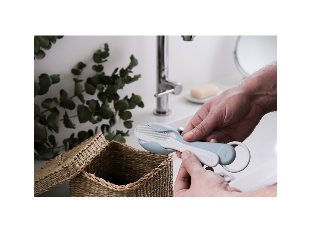 Súprava na starostlivosť o vlásky vášho dieťaťa od narodenia obsahuje kefu s mäkkými štetinami a hrebienok so zaoblenými zubami. Ergonomický tvar kefy aj hrebeňa uľahčuje rodičovi uchopenie.
