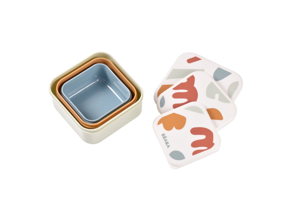 Sada troch desiatových boxov v troch veľkostiach je ideálna na desiaty do školy aj na výlety a prechádzky. Viečko chráni obsah boxu pri prenášaní, jeho ergonomické prevedenie umožňuje ľahké otváranie aj malými detskými ručičkami.