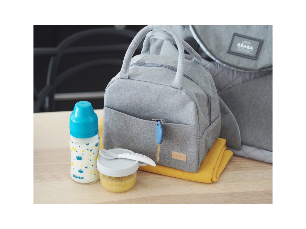Termoizolačná taška vám pomôže udržať nápoje či detské príkrmy teplé alebo chladné podľa potreby počas vašich výletov aj prechádzok s deťmi. Taška s objemom 5 litrov ponúka dostatok priestoru pre kompletný obed vrátane príboru, podbradníka a pod. Vďaka svojej výške je vhodná pre väčšinu dojčenských fliaš. Vonkajšie vrecko ponúka priestor na uloženie drobností. Držadlá uľahčujú prenášanie.