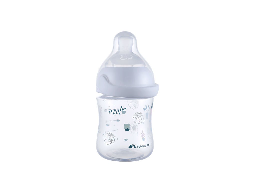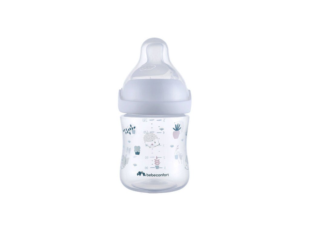Dojčenská fľaštička Bebeconfort Emotion Physio s unikátnym silikónovým cumlíkom fyziologického tvaru je zárukou, že dieťa takmer nepociťuje rozdiel medzi dojčením a kŕmením z fľaštičky. Fľaštička je antikoliková, opatrená dvojitým ventilačným systémom na okraji cumlíka, ktorý citlivo zabezpečí únik vzduchu z fľaše, tým umožní plynulé sanie tekutiny a zároveň znižuje riziko brušnej koliky.