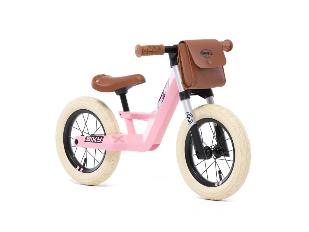 BERG Biky - Retro odrážadlo ružové je stvorené pre dobrodružstvo. Odrážadlo je bezpečné a je vybavené regulátorom riadenia s dvoma polohami - režim pre bezpečný štart a zručnostný režim pre voľnú jazdu. Praktická odnímateľná retro sedlová taška uvezie drobné poklady, ktoré deti potrebujú mať pri sebe, nech už idú kamkoľvek. Dvojitá predná vidlica z hliníka je cez svoj robustný vzhľad ľahká a upúta vďaka svojmu športovému vzhľadu. Nízky rám uľahčuje nastupovanie a vystupovanie. Vyčnievajúce časti sú bezpečne skryté. Sedlo je výškovo nastaviteľné. Riadidlá sú pohodlné. Tiché 12 ´´pneumatiky. Maximálna nosnosť: 30 kg. Odporúčaný vek: 2,5 - 5 rokov. Nádherné ružové prevedenie je vhodné pre chlapcov i dievčatá. Rozmer (d x š x v): 88,5 x 41,5 x 50,5 cm . Rozmer balenia: 89 x 51 x 42 cm. Video: https://www.youtube.com/watch?v=6KOvjjkpgYc