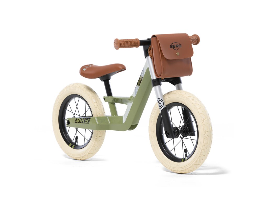 BERG Biky - Retro odrážadlo zelené je stvorené pre dobrodružstvo. Odrážadlo je bezpečné a je vybavené regulátorom riadenia s dvoma polohami - režim pre bezpečný štart a zručnostný režim pre voľnú jazdu. Praktická odnímateľná retro sedlová taška uvezie drobné poklady, ktoré deti potrebujú mať pri sebe, nech už idú kamkoľvek. Dvojitá predná vidlica z hliníka je cez svoj robustný vzhľad ľahká a upúta vďaka svojmu športovému vzhľadu. Nízky rám uľahčuje nastupovanie a vystupovanie. Vyčnievajúce časti sú bezpečne skryté. Sedlo je výškovo nastaviteľné. Riadidlá sú pohodlné. Tiché 12 ´´pneumatiky. Maximálna nosnosť: 30 kg. Odporúčaný vek: 2,5 - 5 rokov. Nádherné zelené prevedenie je vhodné pre chlapcov i dievčatá. Rozmer (d x š x v): 88,5 x 41,5 x 50,5 cm . Rozmer balenia: 89 x 51 x 42 cm. Video: https://www.youtube.com/watch?v=6KOvjjkpgYc