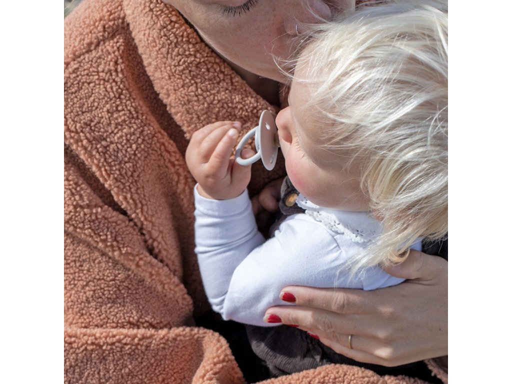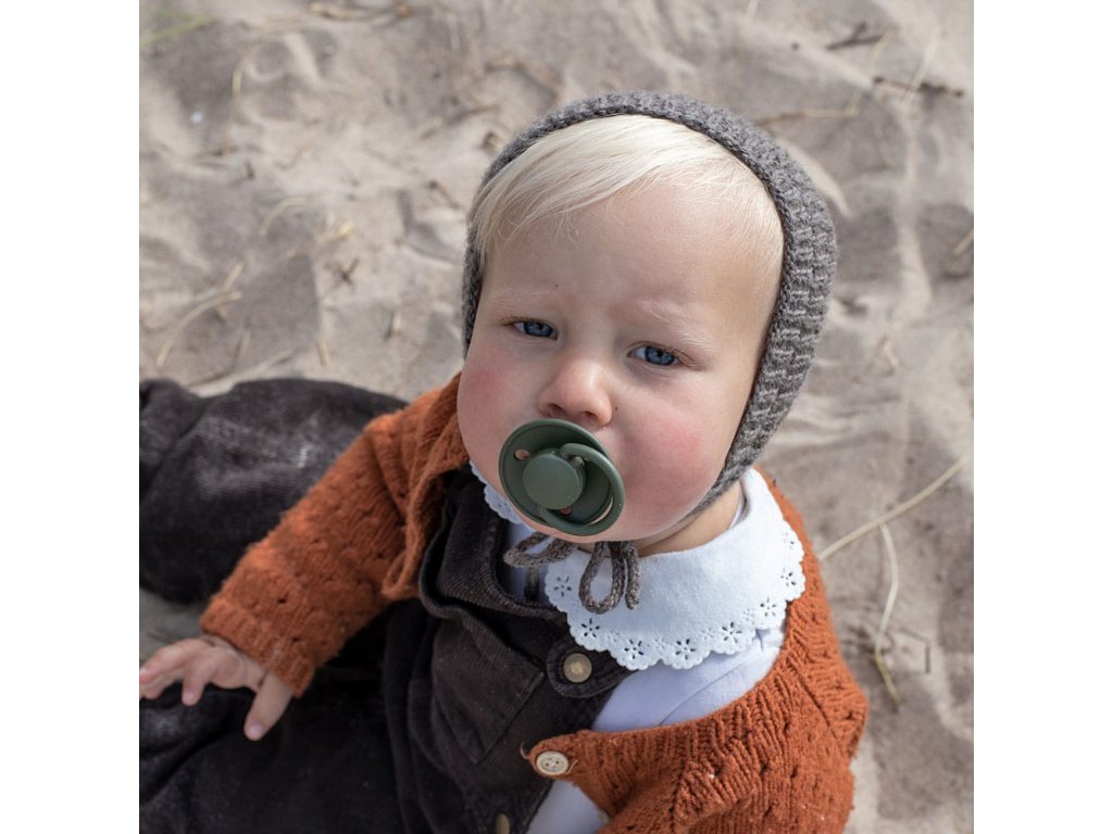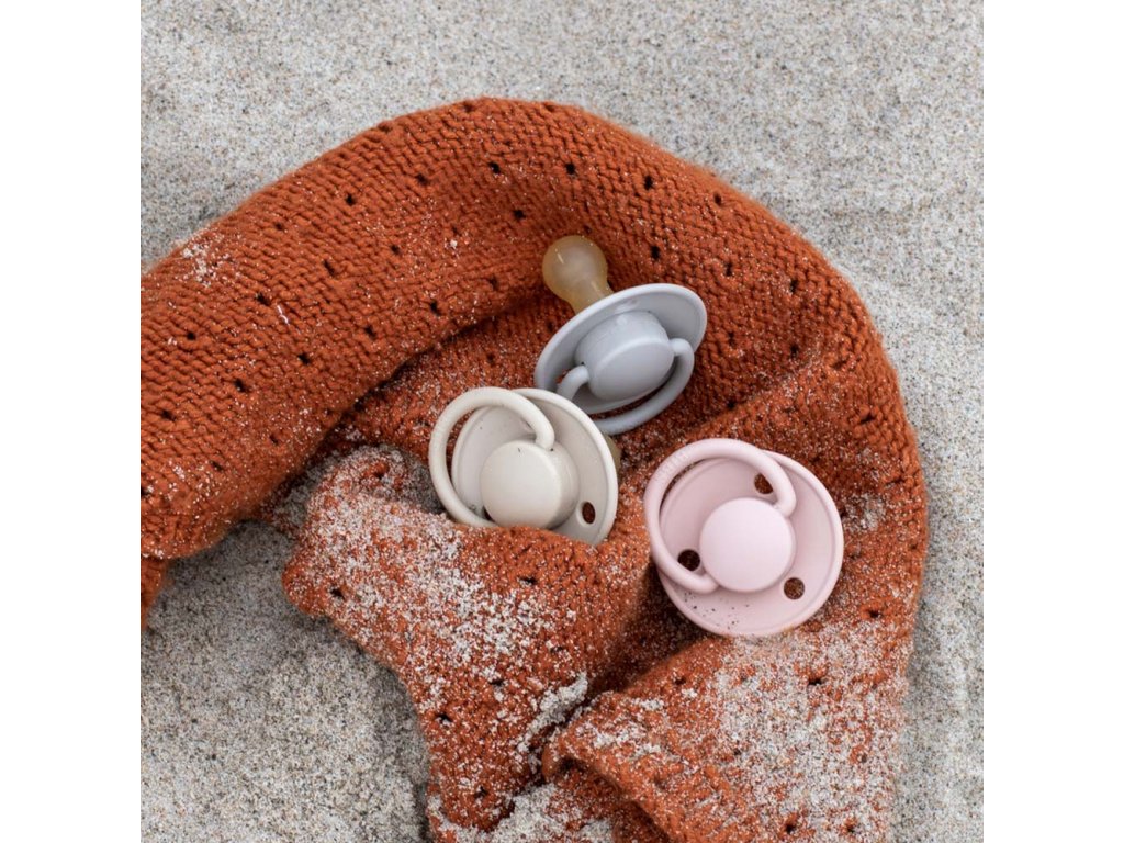 BIBS dobývajú celý svet. Jednoduché a štýlové. Ikonické cumlíky navrhnuté a vyrábané v Dánsku už od roku 1978. Ich minimalistický škandinávsky dizajn a široký farebný výber sú pre BIBS cumlíky typické. Všetky BIBS produkty sú garanciou najvyššej kvality detského sortimentu. BIBS De Lux je klasický guľatý cumlík s minimalistickým vzhľadom a moderným matným povrchom v krásnej farebnej ponuke jemných, pastelových, zemitých aj neutrálnych tónov. Cumlík je navrhnutý tak, aby nedráždil citlivú pokožku bábätka. Okrúhly krúžok s vetracími otvormi má klenutý tvar, takmer vôbec sa nedotýka pokožky okolo úst, tá preto zostáva kľudná, bez otlačkov a podráždení. Vďaka zabudovanému vzduchovému ventilu dieťa cumlík ľahko stláča a formuje v ústach, čím je zachovaný prirodzený vývin podnebia, ďasien a zúbkov detí. Zloženie: Sacia časť: 100% silikón najvyššej kvality Ostatné časti: polypropylén (PP) Bez BPA, PVC, ftalátov a iných škodlivých látok. Vyrobené v Dánsku. Testované v Consumer Lab Denmark. V súlade s európskym štandardom EN 1400+A2. Veľkosti: BIBS De Lux silikónové cumlíky sú k dispozícii v jednej univerzálnej veľkosti 0-3 roky.