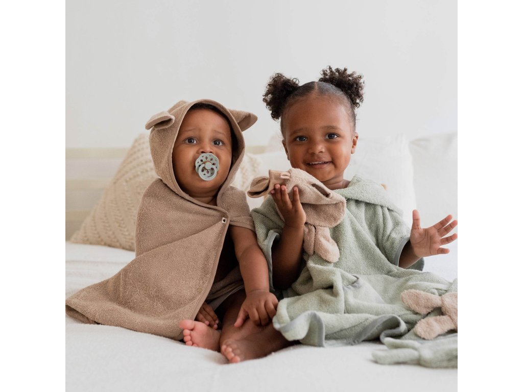 BIBS je obľúbená dánska značka s tradíciou výroby ikonických cumlíkov od roku 1978. Okrem cumlíkov BIBS ponúka aj pestrý prémiový sortiment pre najmenšie deti v minimalistickom škandinávskom dizajne a širokej farebnej palete. Všetky BIBS produkty sú garanciou najvyššej kvality detského sortimentu. BIBS pončo uterák je vyrobený z prémiovej 100% BIO bavlny s certifikátom OEKO-TEX®. Vďaka kvalitnému hrubému materiálu je mäkučký, výborne zahreje a odsaje vlhkosť po kúpeli, či v lete pri vode. Kapucňa poskytuje tepelný komfort a osuší vlásky. Froté zo 100% organickej BIO bavlny s certifikátom OEKO-TEX®. Mäkké a jemné k citlivej detskej pokožke. Hrubé bavlnené froté výborne saje. Roztomilé kengurie ušká a vrecko, kde si môžu detičky schovať svoju obľúbenú hračku z kúpeľa. Vekové odporúčanie: 2-4 roky. Rozmer: 56x60 cm. Zloženie : 100% organická BIO bavlna s certifikátom OEKO-TEX®. Starostlivosť: Pred prvým použitím operte, zabezpečíte tak vyššiu savosť. Pranie v práčke na 40°C, bežný program. Je možné sušiť v sušičke na bežný program. Nežehliť, nečistiť chemicky, nebieliť.
