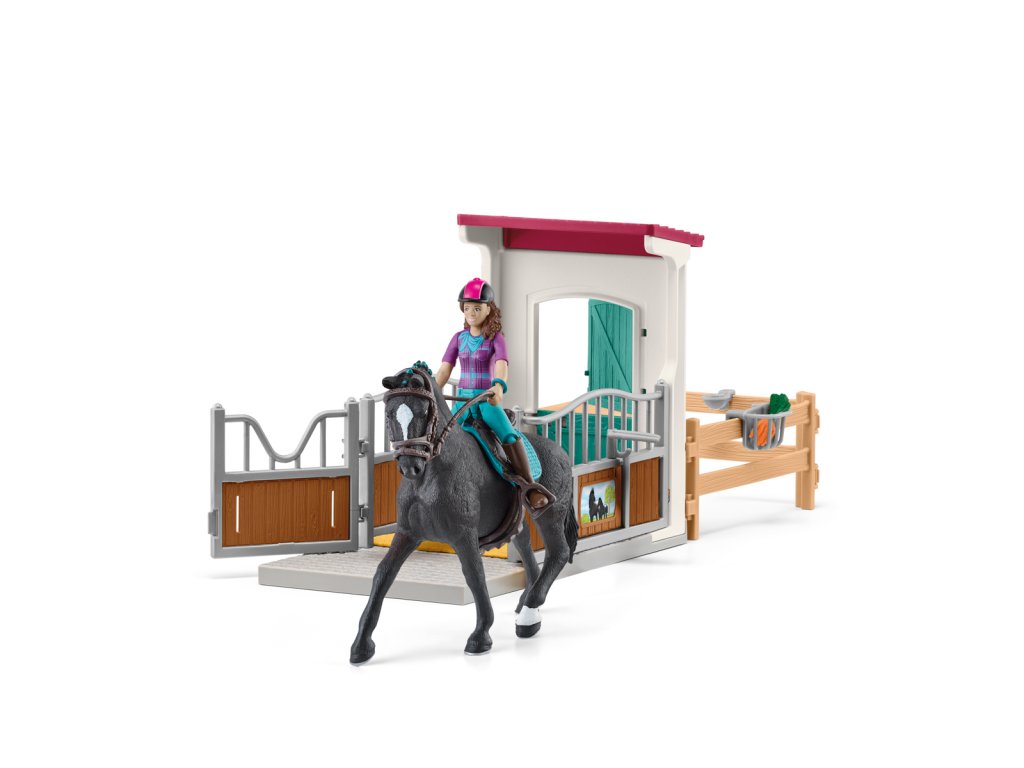 Vyčerpaná, ale šťastná Lisa a jej krásny hannoverský valach klusajú späť do stajní. Práve dokončili spoločný tréning. Pre oboch to bola veľká zábava, ale aj to bolo trochu vyčerpávajúce. Preto si Storm, nádherný valach, smie zatiaľ oddýchnuť. Lisa svižne zosadne zo sedla a otvorí dvere do boxu. Vnútri si zloží prilbu a vedie Storma do jeho domova. Obratne rozopne popruhy a zloží svojmu vernému spoločníkovi sedlo a uzdu. Je čas si oddýchnuť! Rozmery modelu: 19 x 24,5 x 8,2 cm. Vek: 5-12