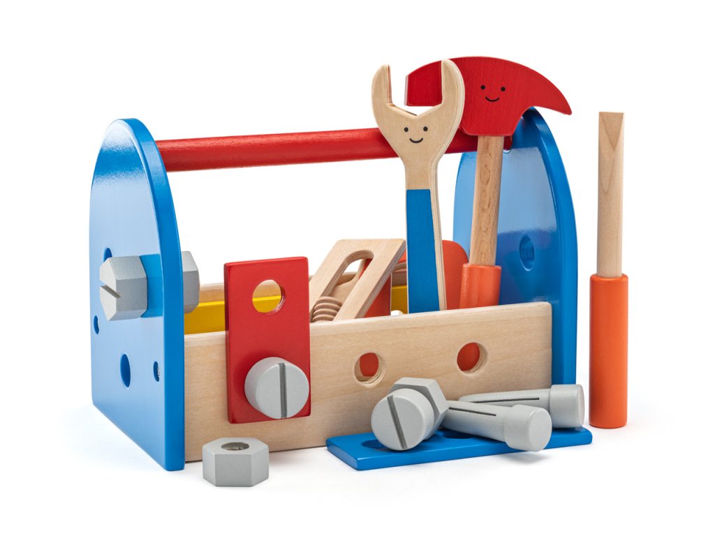 Táto hračka formou hry rozvíja jemnú motoriku a technické chápanie. Taška súčasne slúži ako základňa pre prácu s podložkami a skrutkami. Všetko je vyrobené z kvalitného dreva. | Vek: 3+ | Rozmer: 20 x 12x 14,5 cm | Počet ks: 18