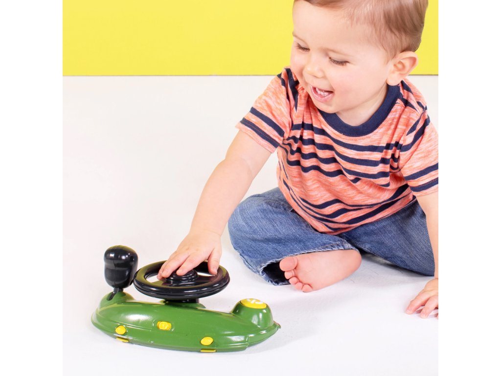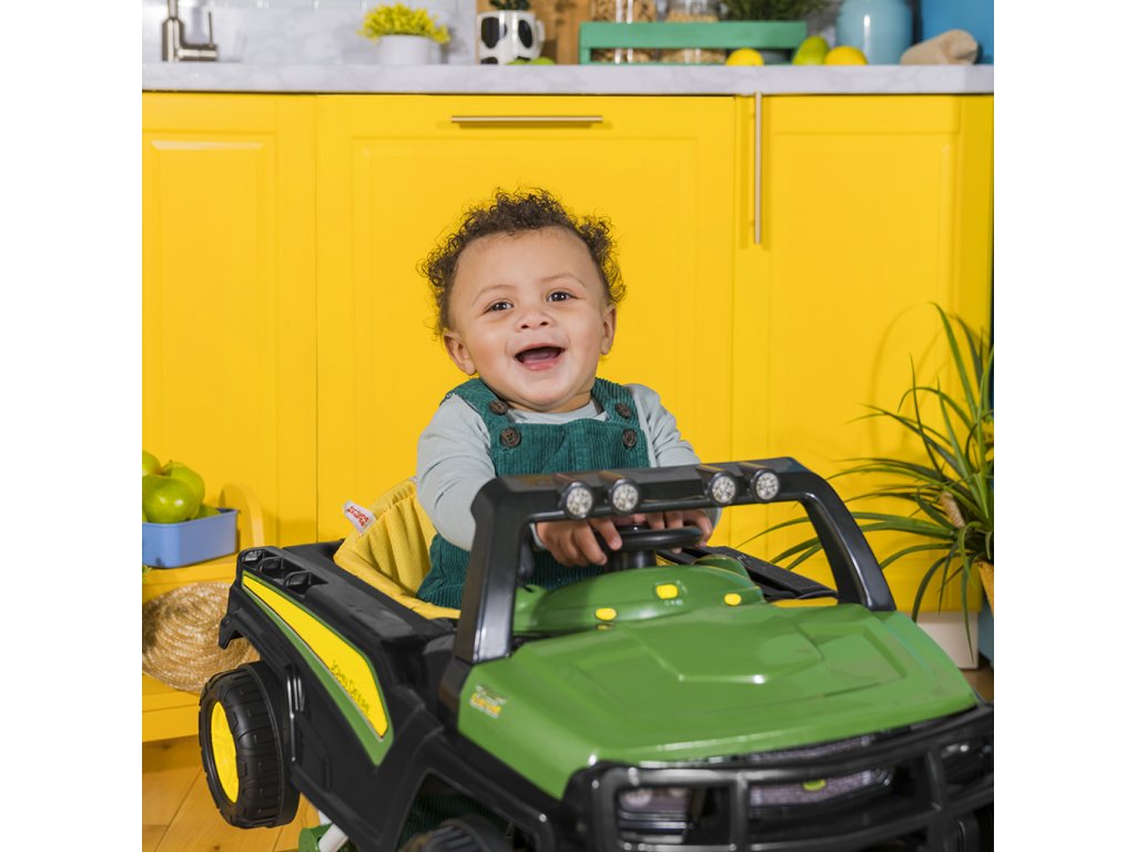 Vysoké operadlo sedadla poskytuje dieťaťu pohodlie a oporu. Pre ešte väčšiu zábavu možno odpojiť hraciu stanicu s volantom a dieťa sa môže hrať posediačky alebo aj na cestách. V ktoromkoľvek z 4 režimov si dieťa užije imaginárnu jazdu s realistickými zvukmi John Deere Gator, svetlami, radiacou pákou, volantom a dizajnom skutočného terénneho vozidla.