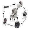Športový kočík Britax Römer Rio, hlbokú vaničku Britax Römer Rio, autosedačku Baby-Safe Core, základňu Baby-Safe Core Base, pláštenku na kočík Rio a pláštenku na hlbokú vaničku Rio.