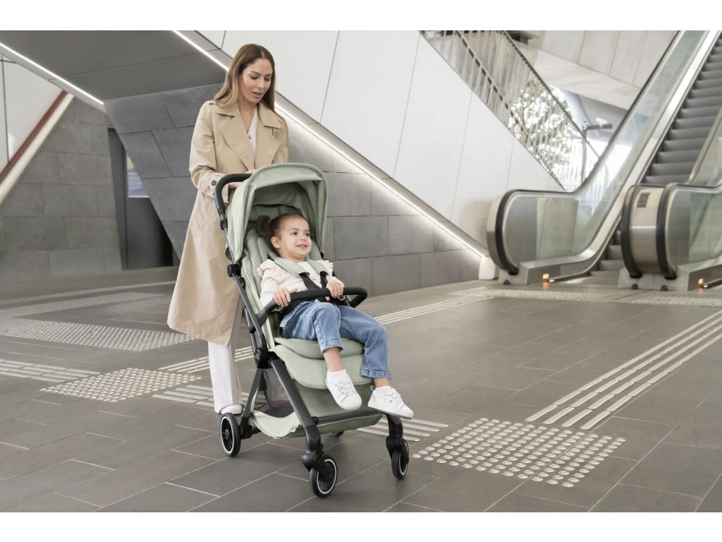 Žiadna cesta nie je rovnaká – a FLYLITE sa prispôsobí každému momentu. Vďaka plynule nastaviteľnej chrbtovej opierke a polohovateľnej opierke nôh si dieťa môže kedykoľvek oddýchnuť alebo naopak sledovať okolie. Polohovanie jednou rukou umožní úpravy aj počas chôdze. Odnímateľné madlo uľahčí nastupovanie a vystupovanie a 5-bodový bezpečnostný pás zabezpečí bezpečnú jazdu.