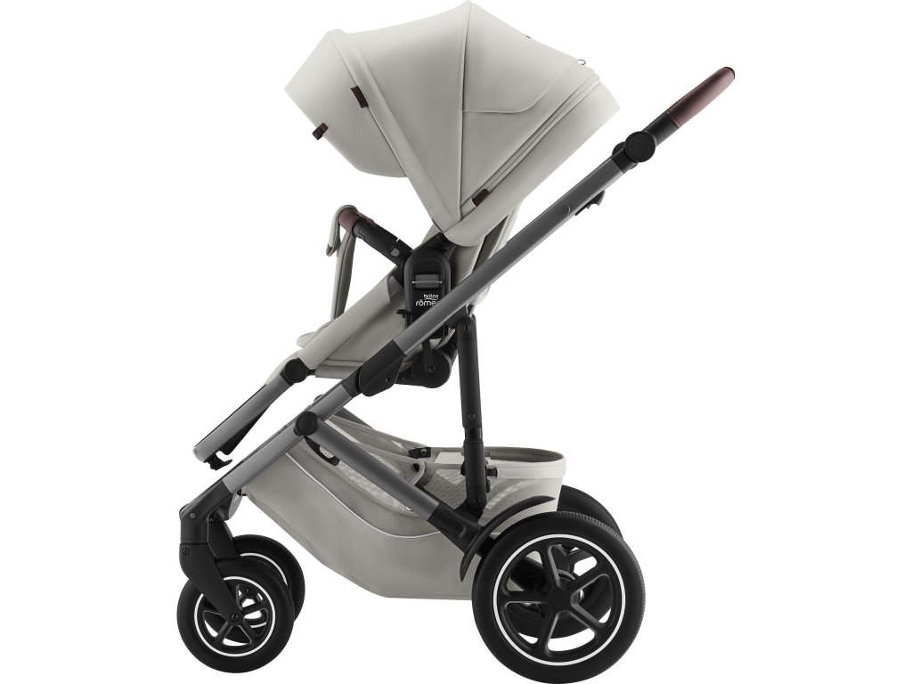 Raz je teplo a slnečno, o chvíľu zase zima a dážď? S kočíkom SMILE 5Z budete pripravení na akékoľvek počasie. Strieška s ochranným faktorom UPF 50+ poskytuje spoľahlivú ochranu pred slnkom a vetracie okienka regulujú teplotu a umožňujú vášmu dieťaťu dýchať čerstvý vzduch. Zároveň svoje bábätko ochránite pred chladom, vetrom aj dažďom vďaka extra veľkej strieške a mimoriadne mäkkému, hrejivému polstrovaniu. SMILE 5Z je navyše štýlový, takže budete vždy trendy.