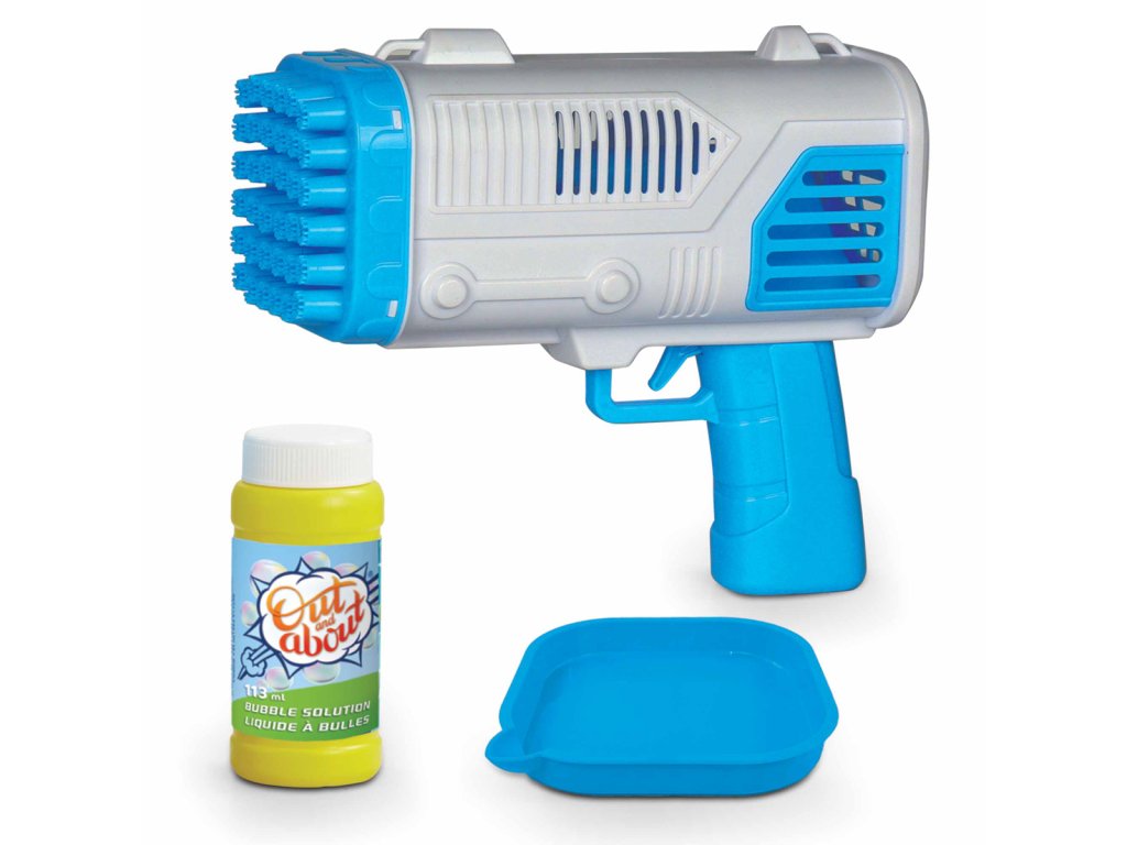 Hľadáte pre svoje deti aktivitu, ktorá ich poteší a zaujme? Bublinková pištoľ s 36 otvormi vystrelí stlačením tlačidla v priebehu niekoľkých sekúnd stovky bubliniek! Stačí iba namočiť zbraň do misky a môžete tvoriť bubliny. Tiež skvelá párty hračka pre dospelých pre vonkašiu zábavu. Mimoriadne ľahké ovládanie, stačí len vložiť batérie. 4xAA batérie nie sú súčasťou balenia. Sada obsahuje pištoľ v modrom prevedení, 113 ml fľaštičku s bublinkovou tekutinou, misku na aplikáciu bublifukovej tekutiny. Rozmer balenia: 37x20x14cm. Vek: 3+